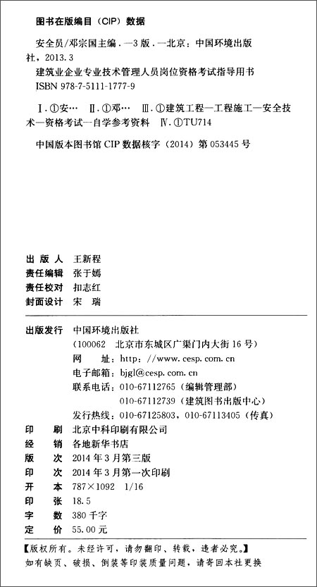 安全员(修订版) 建筑业企业专业技术管理人员岗位资格考试指导用书 邓宗国 环境科学 9787511117779