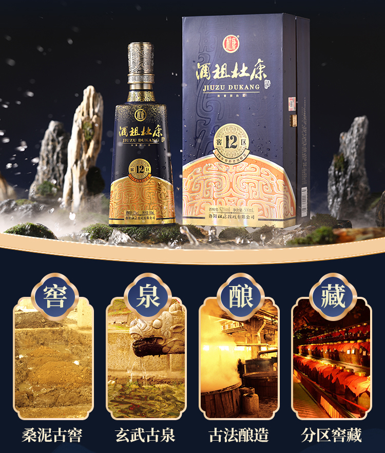 酒祖杜康12窖区500ml*6瓶整箱50年窖龄52度浓香型白酒