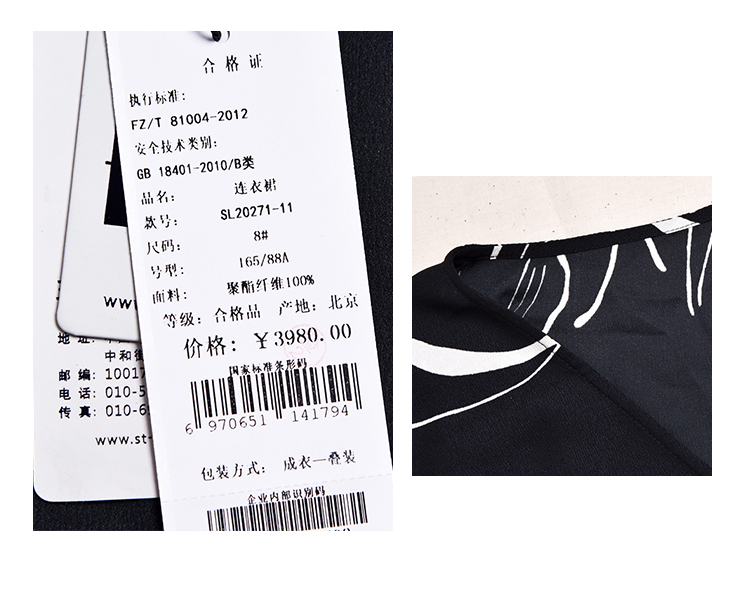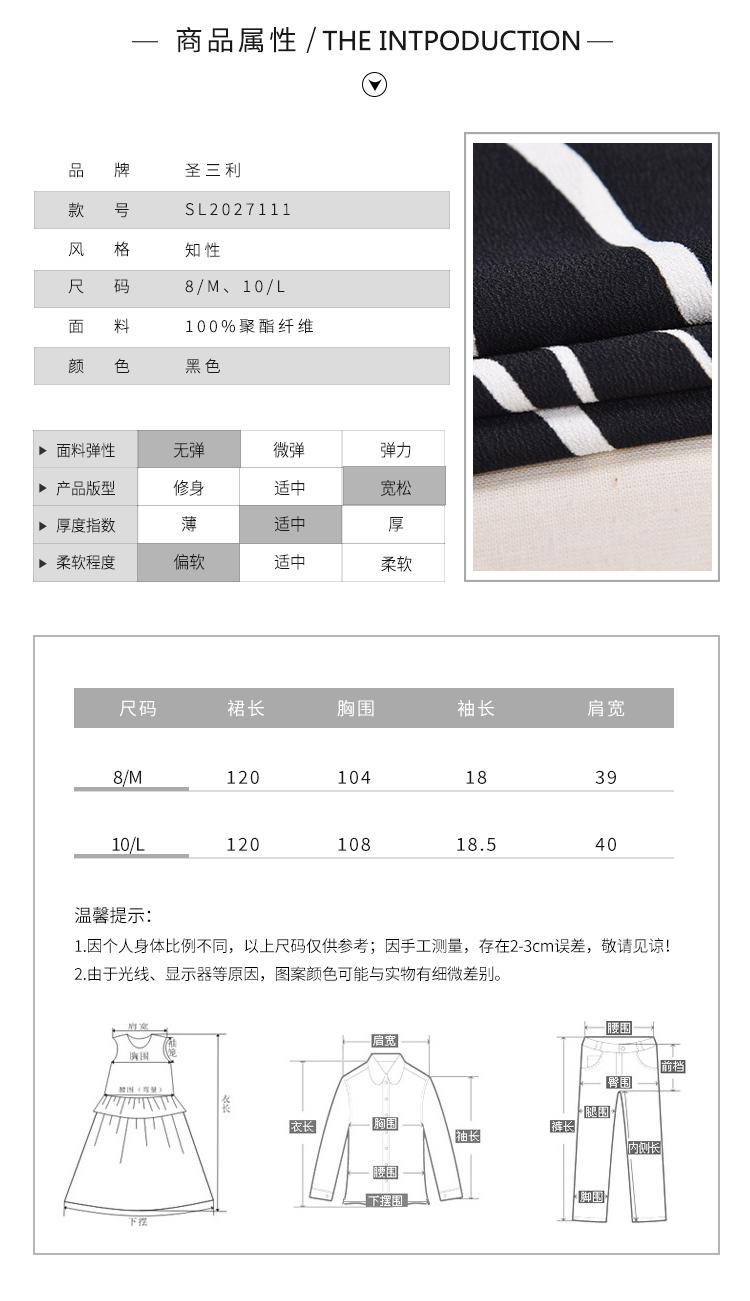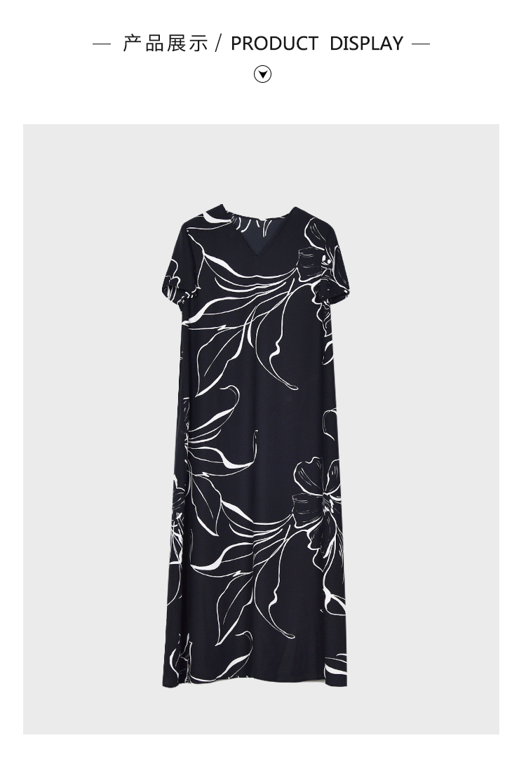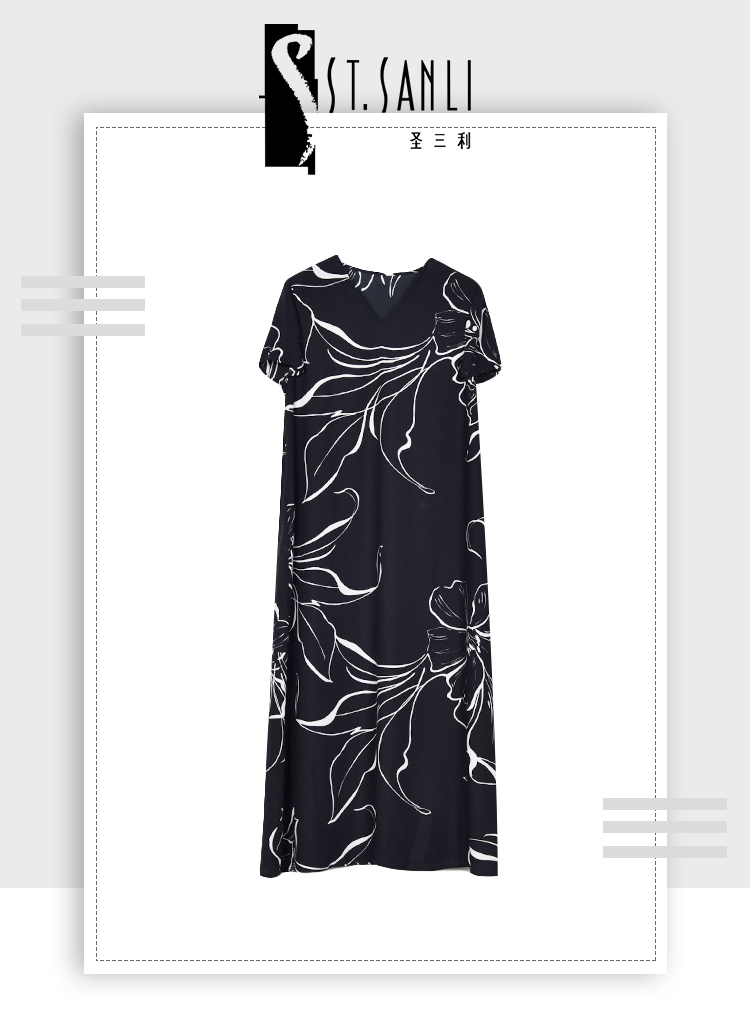 圣三利女装 新品中长款A型宽松黑白印花连衣裙SL2027111