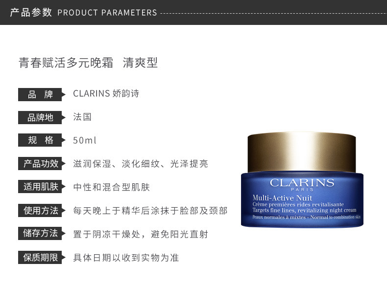 法国 CLARINS娇韵诗 青春赋活多元 晚霜 50ML