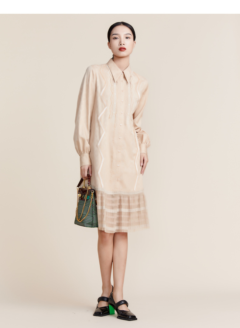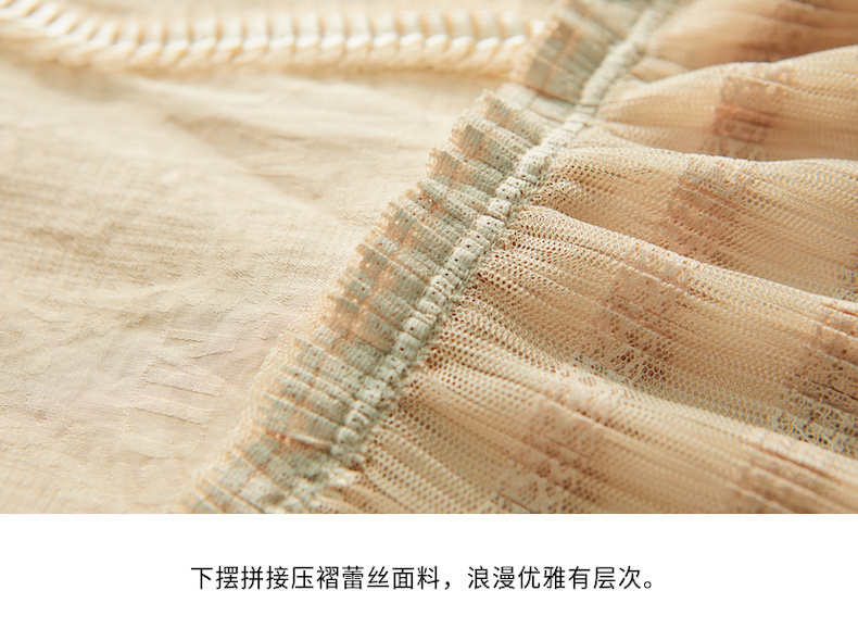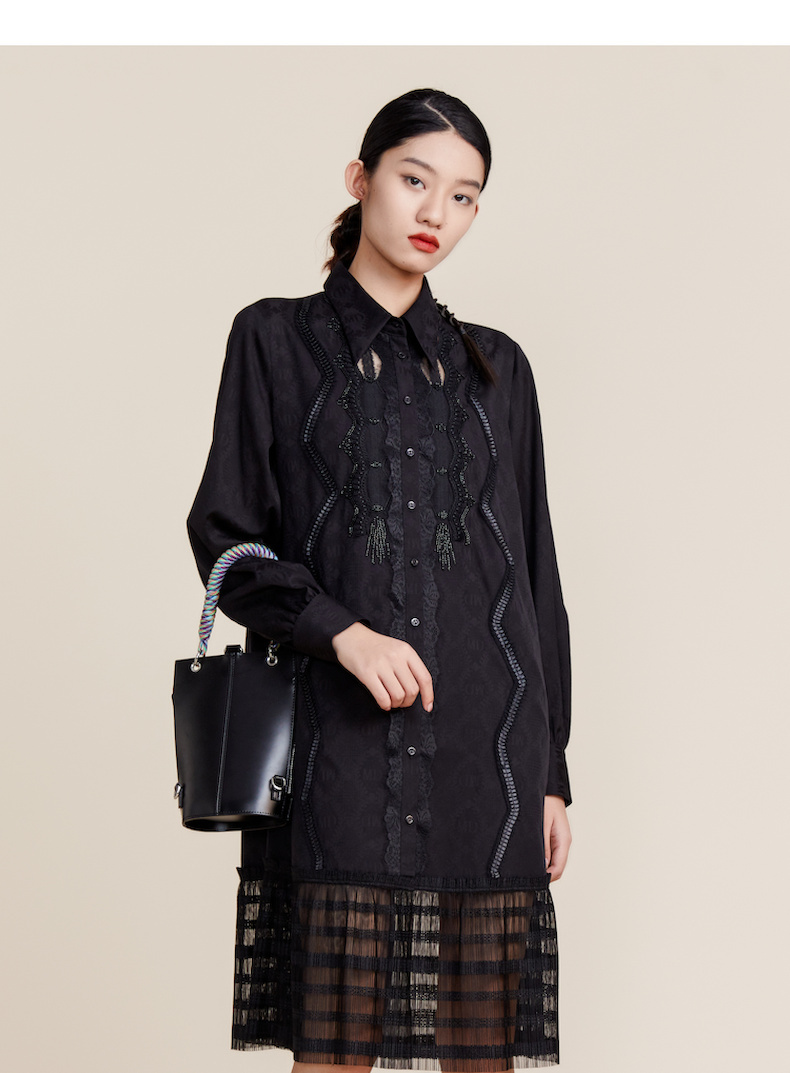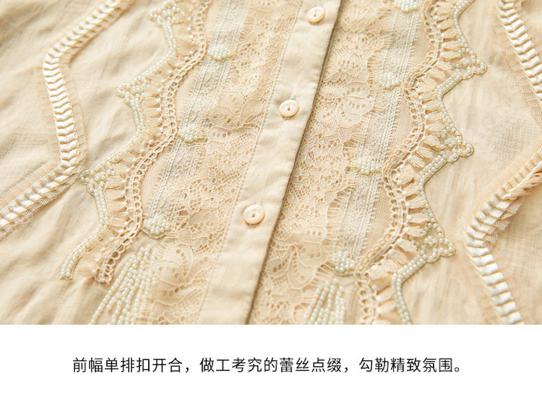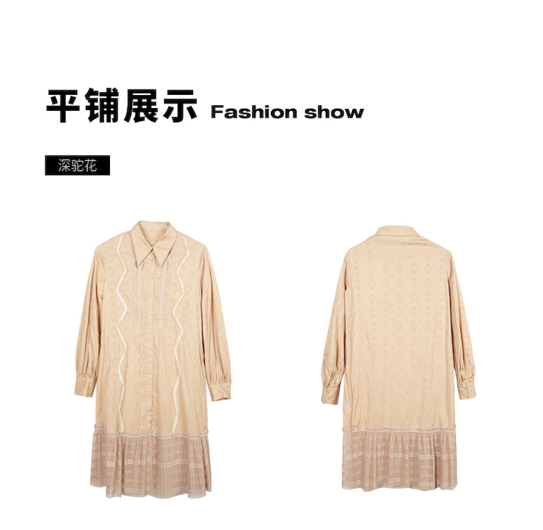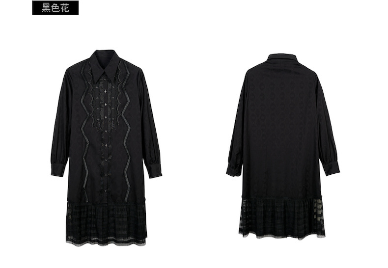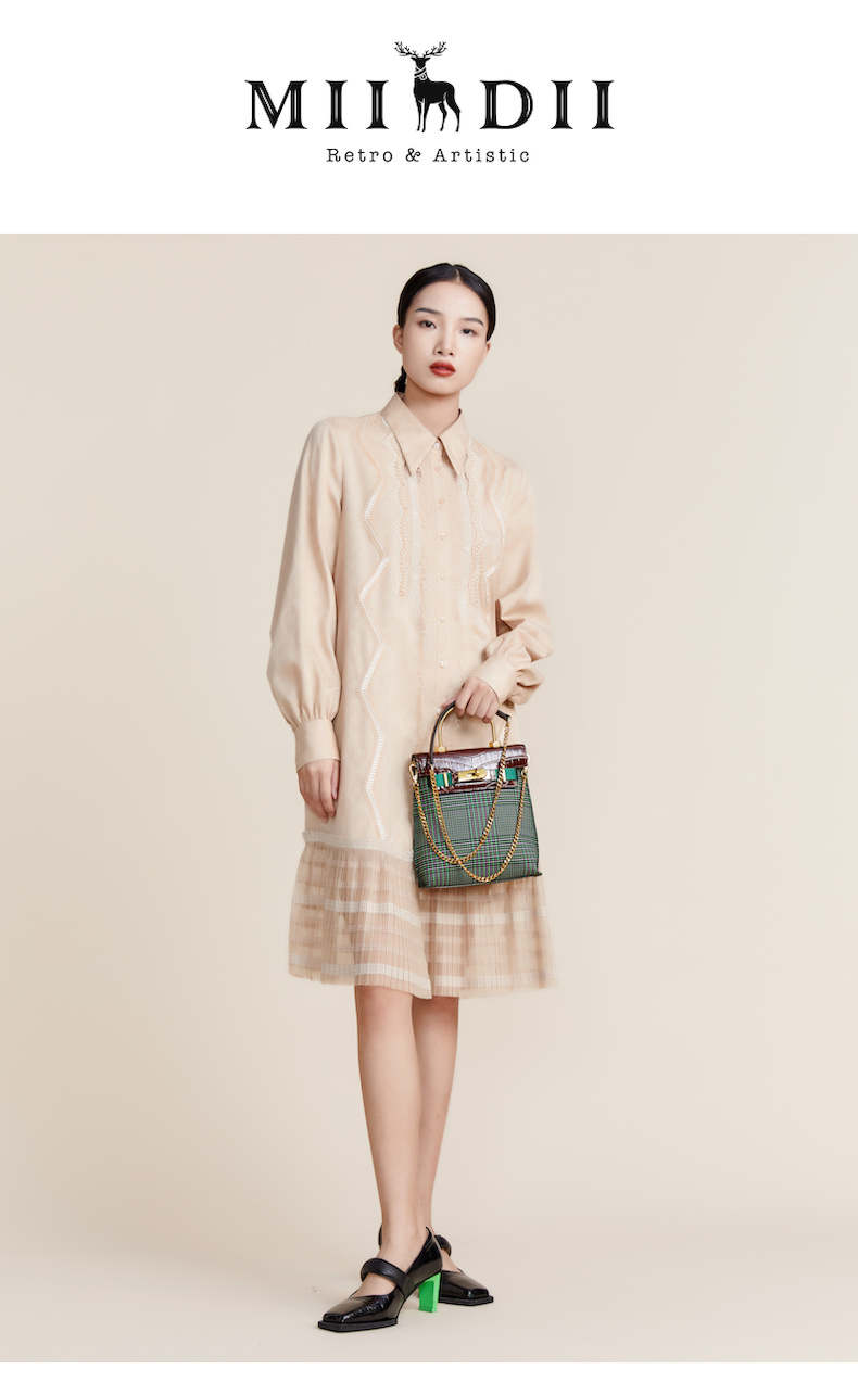 MIIDII谜底2022春新款拼接蕾丝复古优雅衬衫式连衣裙221ML0104