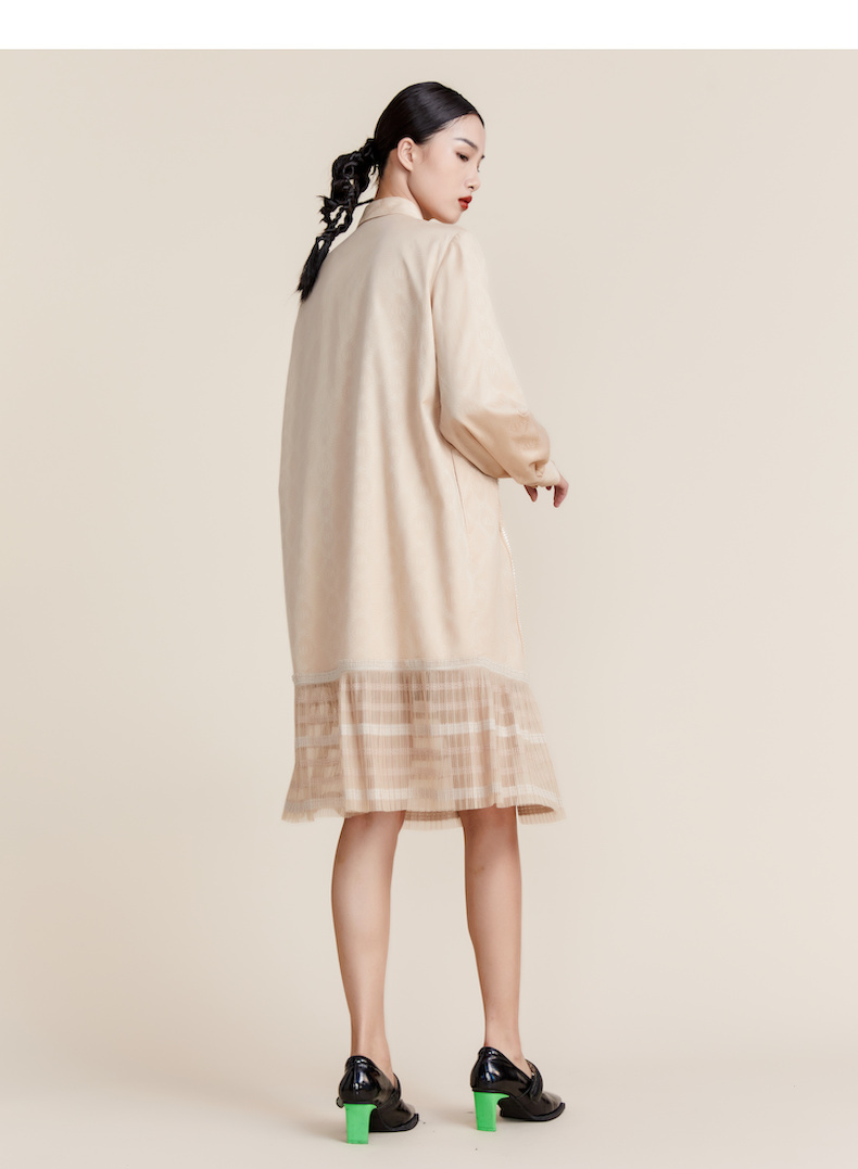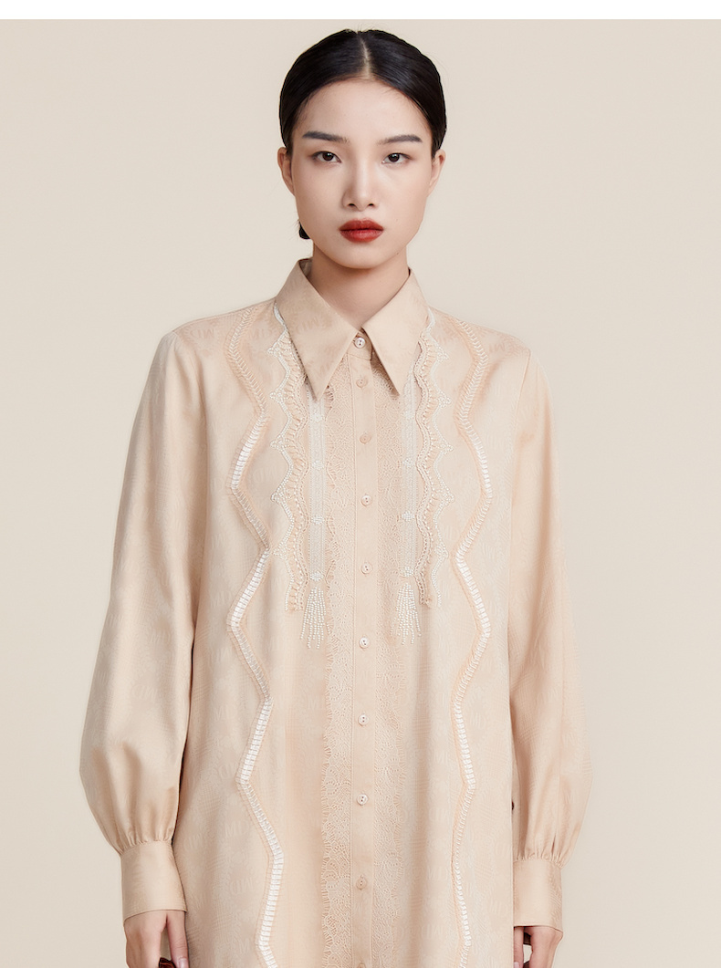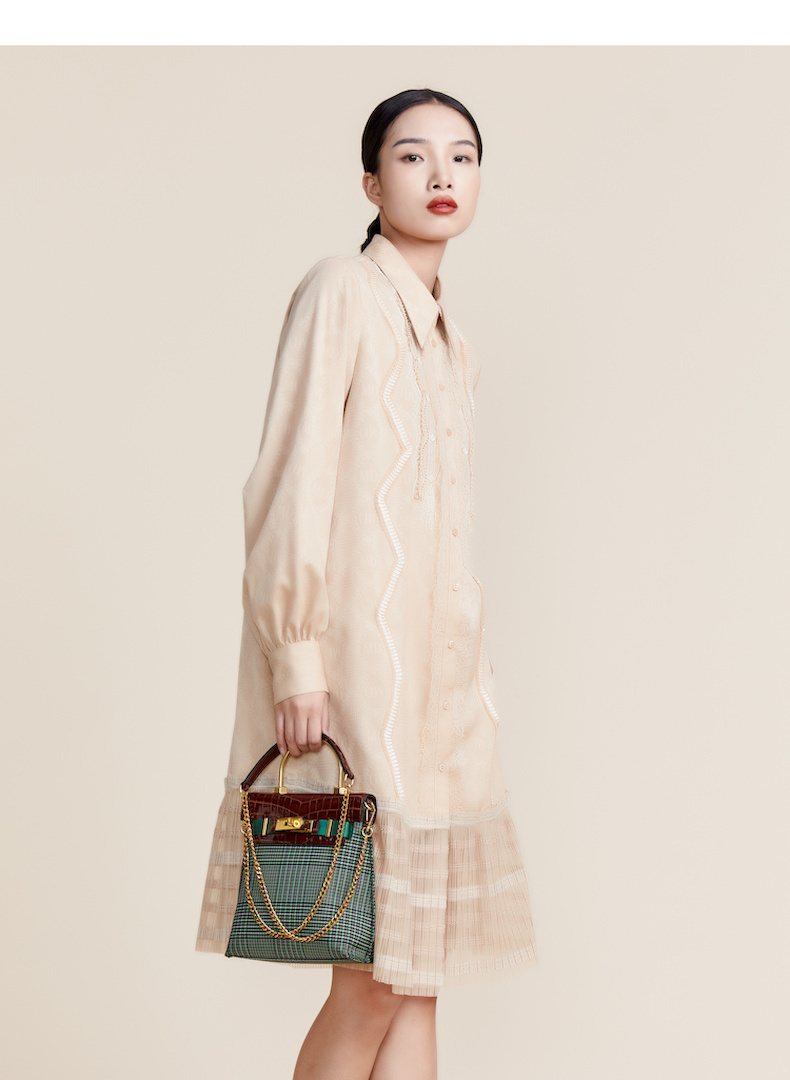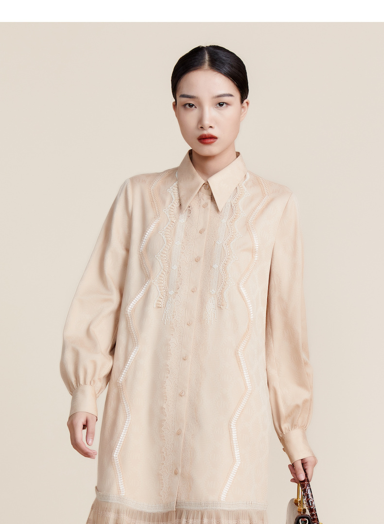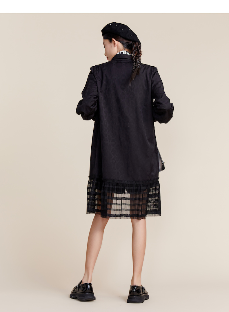 MIIDII谜底2022春新款拼接蕾丝复古优雅衬衫式连衣裙221ML0104