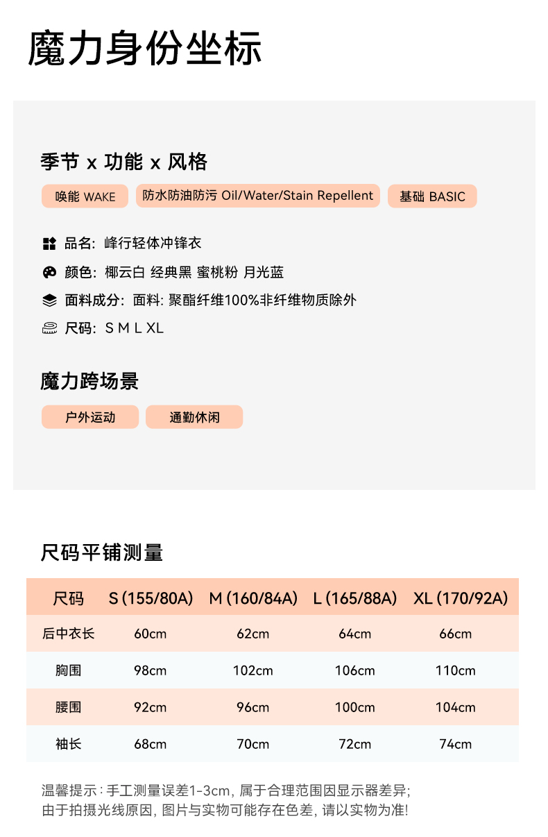 魔力薇薇峰行轻体冲锋衣女户外2025秋冬新款防风防雨水徒步登山服
