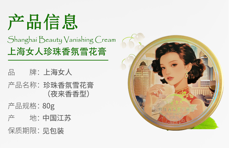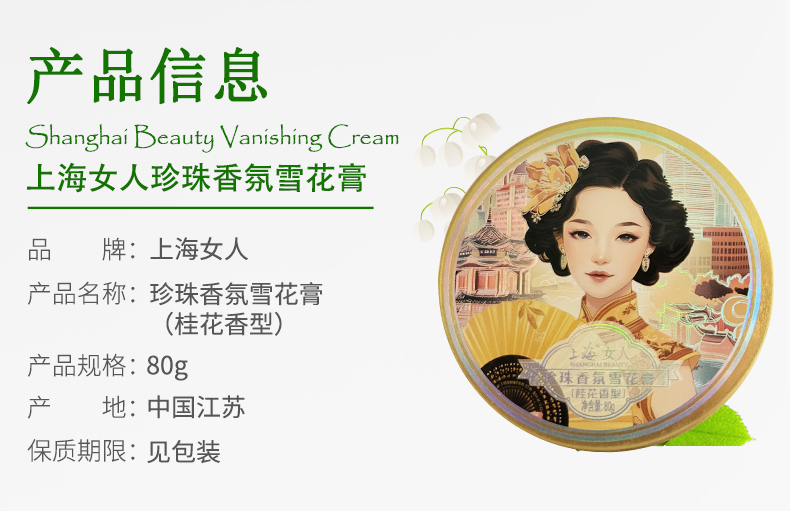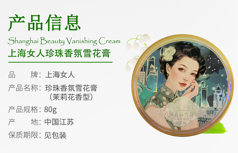 | 上海女人珍珠香氛雪花膏(茉莉花香型) | 80g | 1个 |