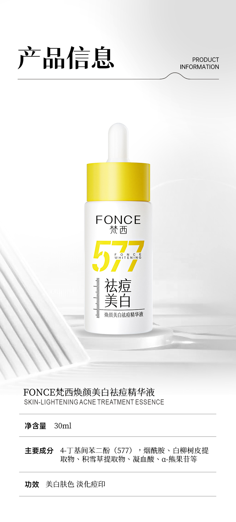 【梵西新品 119元任选3件】梵西祛痘美白577精华液淡化痘印淡斑去闭口黑头修收毛孔 30ml/瓶