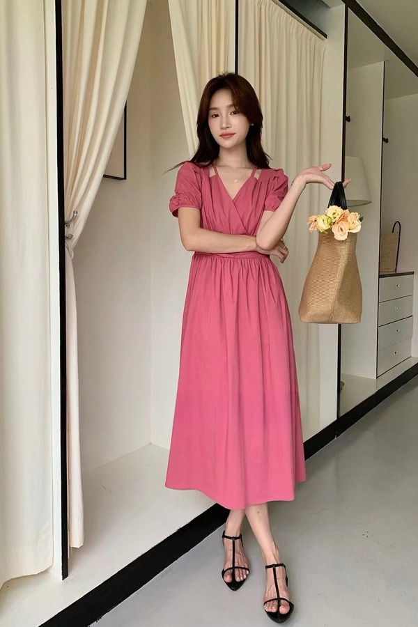 SUMMER & SAGE 玫红色法式茶歇连衣裙 20418