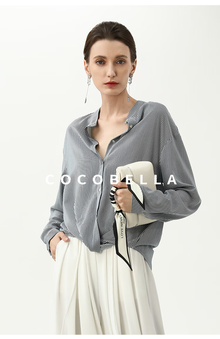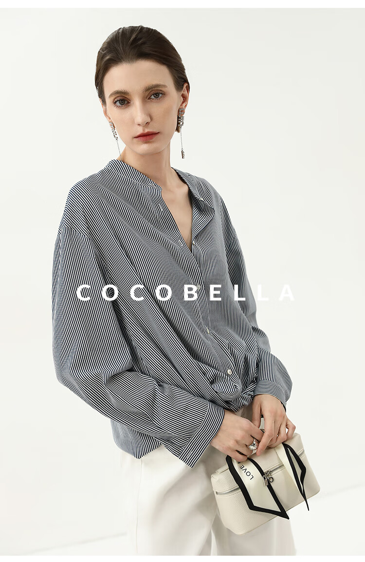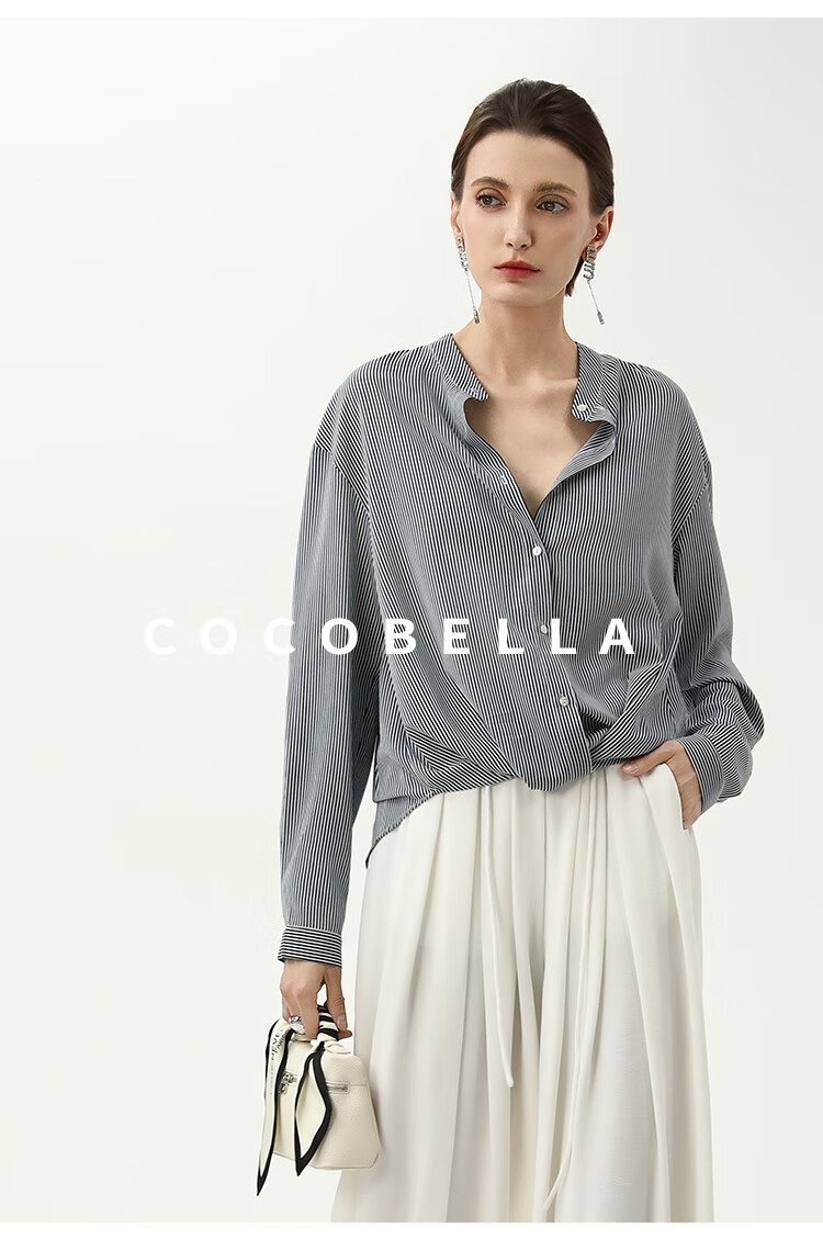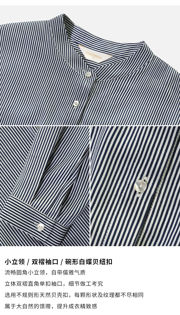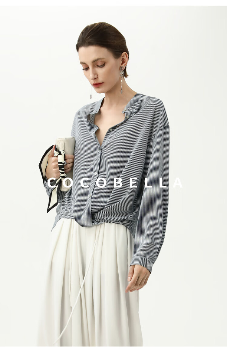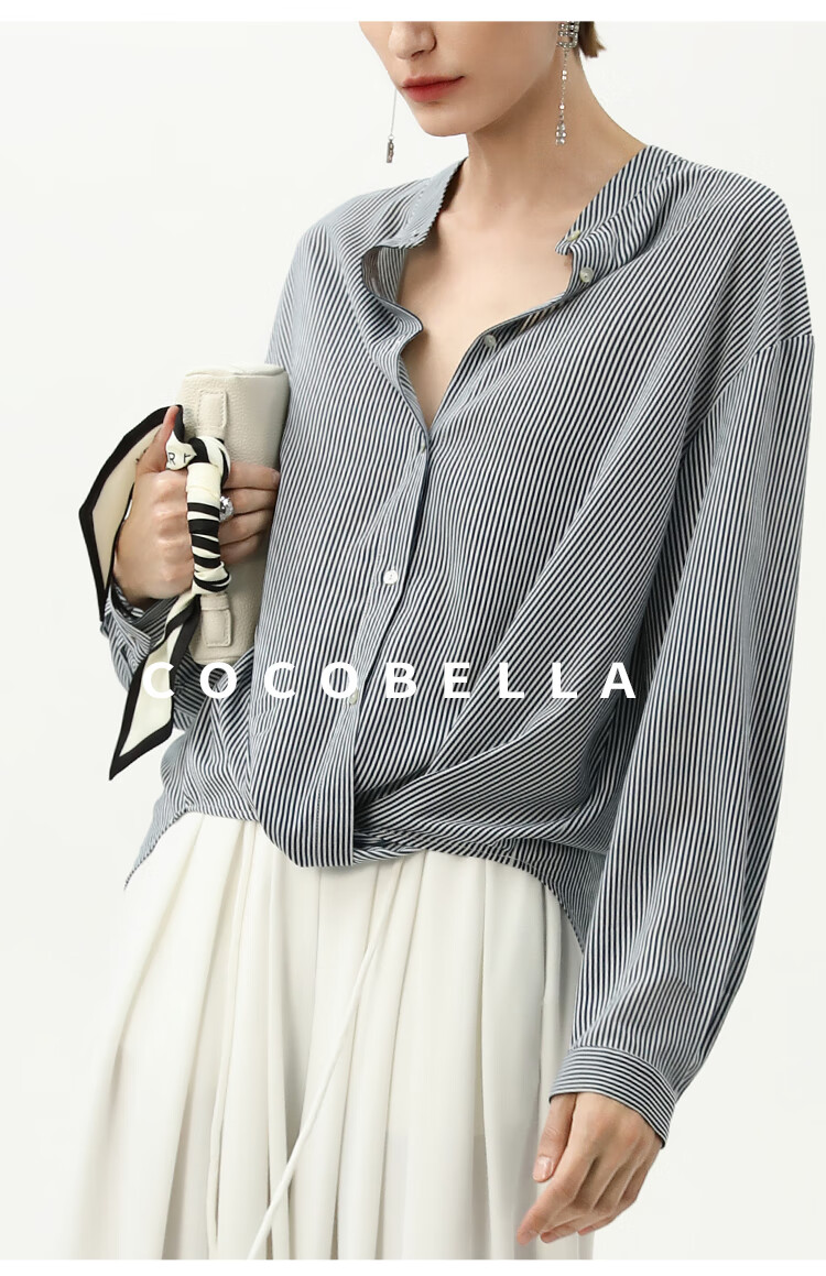 COCOBELLA设计感条纹拧花衬衫春夏通勤休闲小立领上衣SR3196