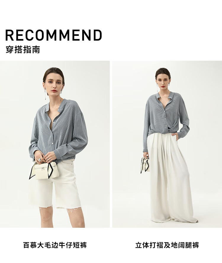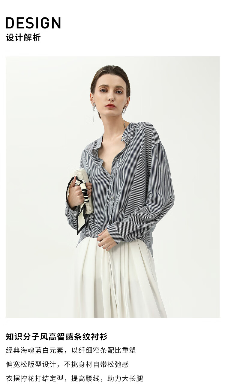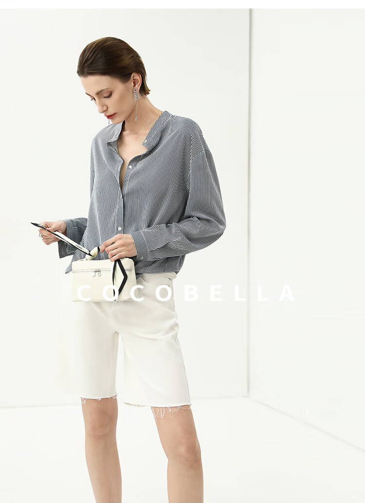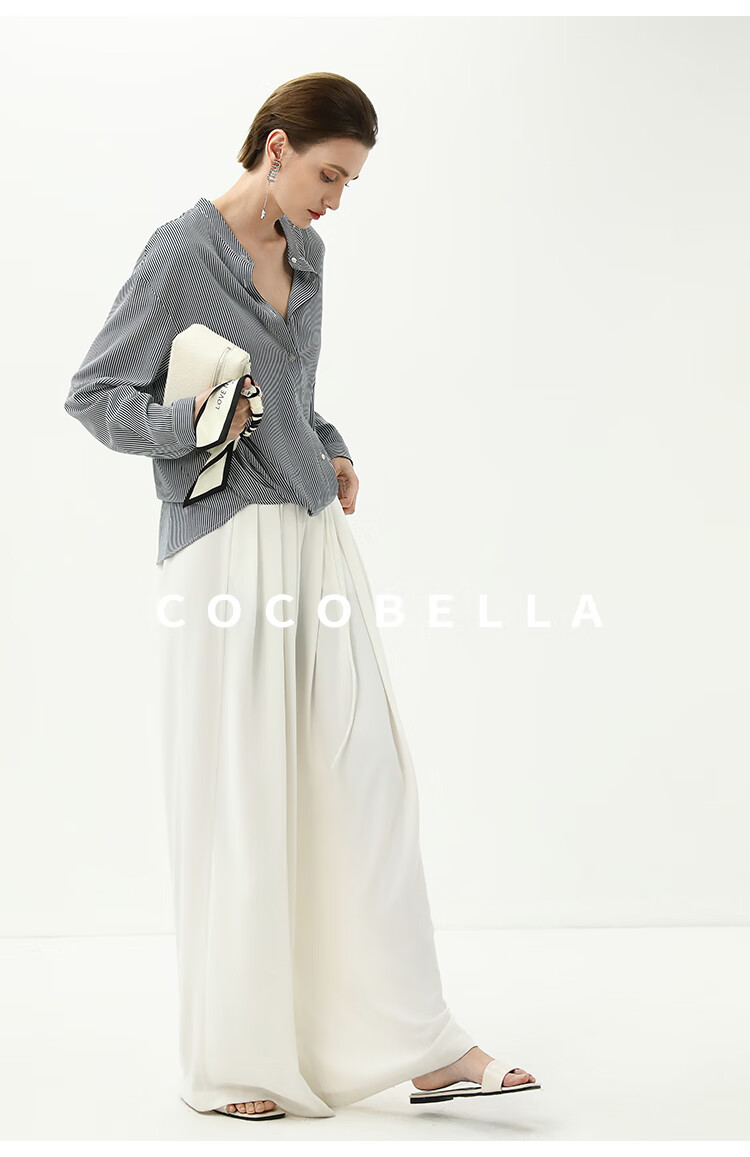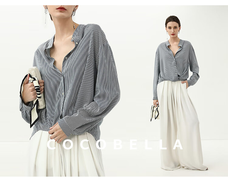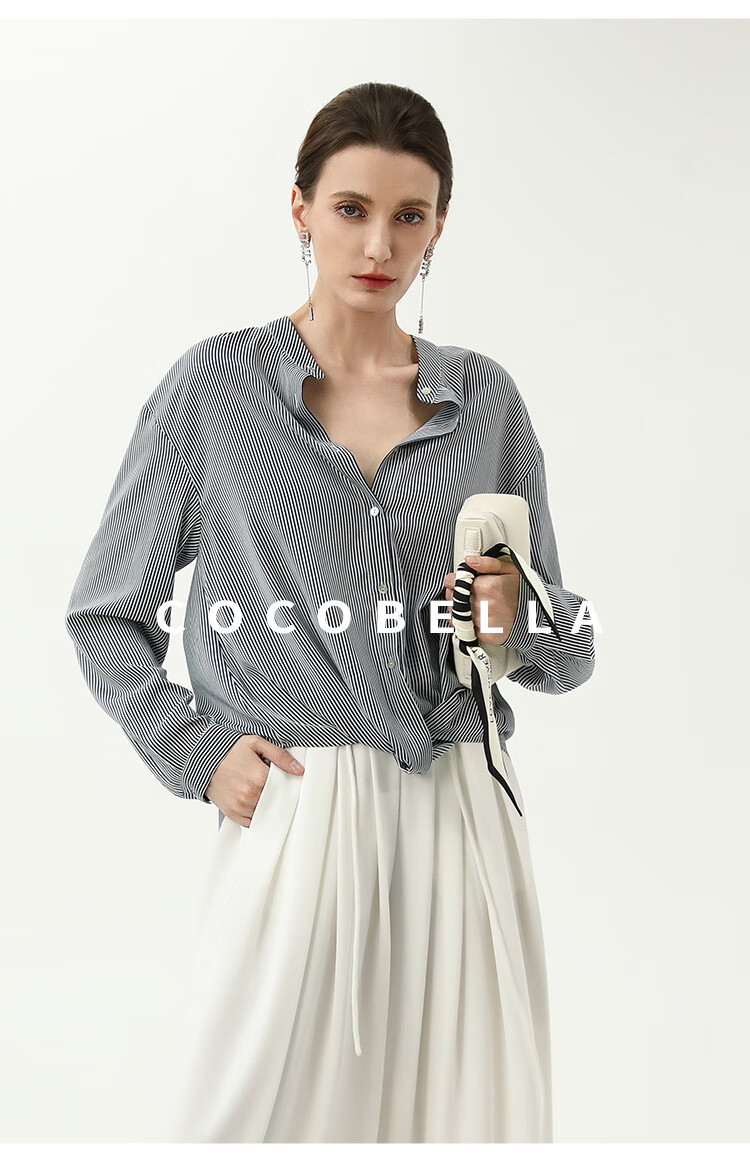 COCOBELLA设计感条纹拧花衬衫春夏通勤休闲小立领上衣SR3196