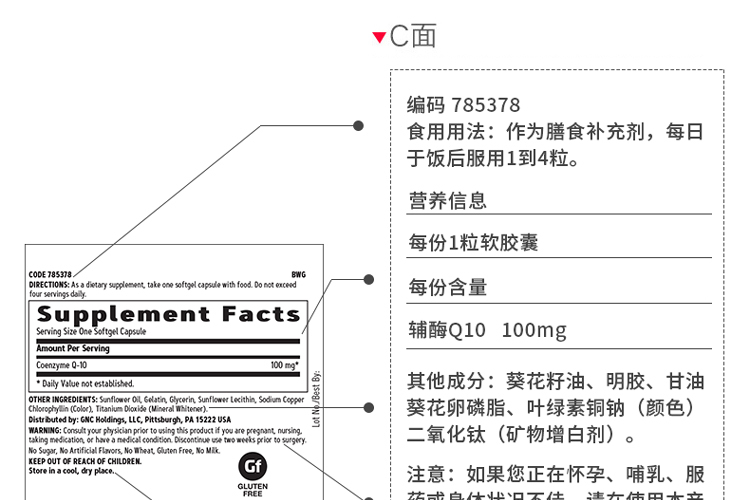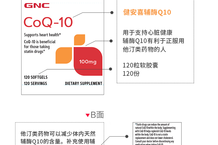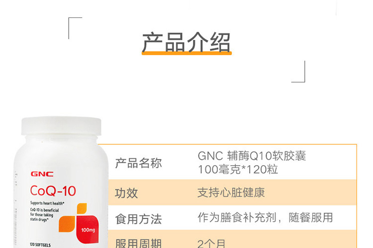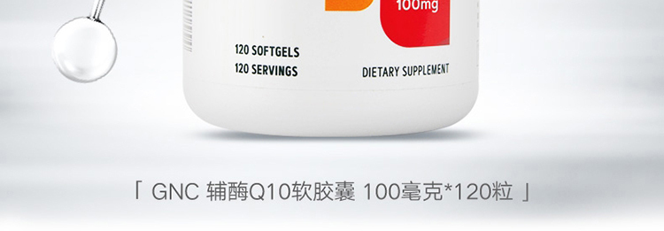 【保税仓】健安喜GNC辅酶Q10软胶囊(100毫克120粒) 120粒(有效期至27年1月)