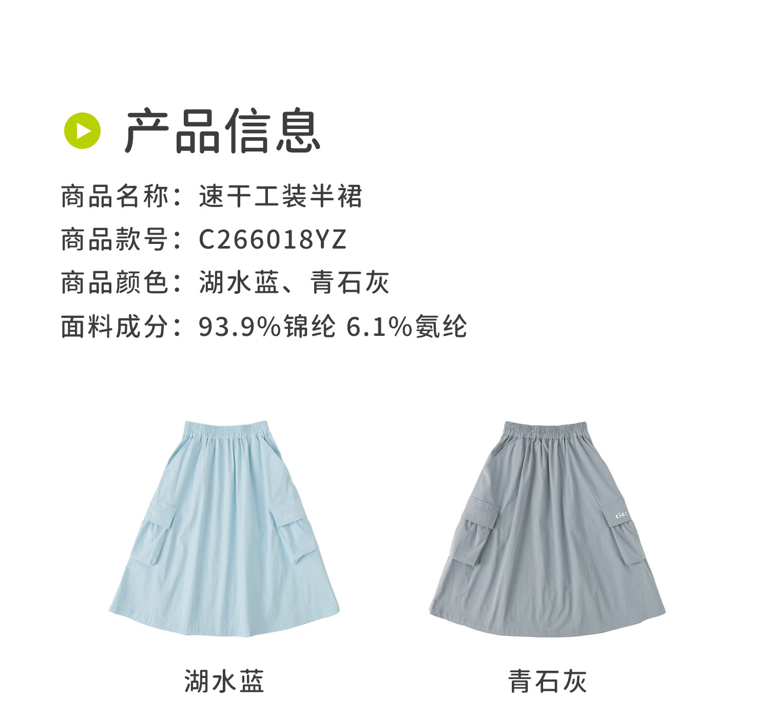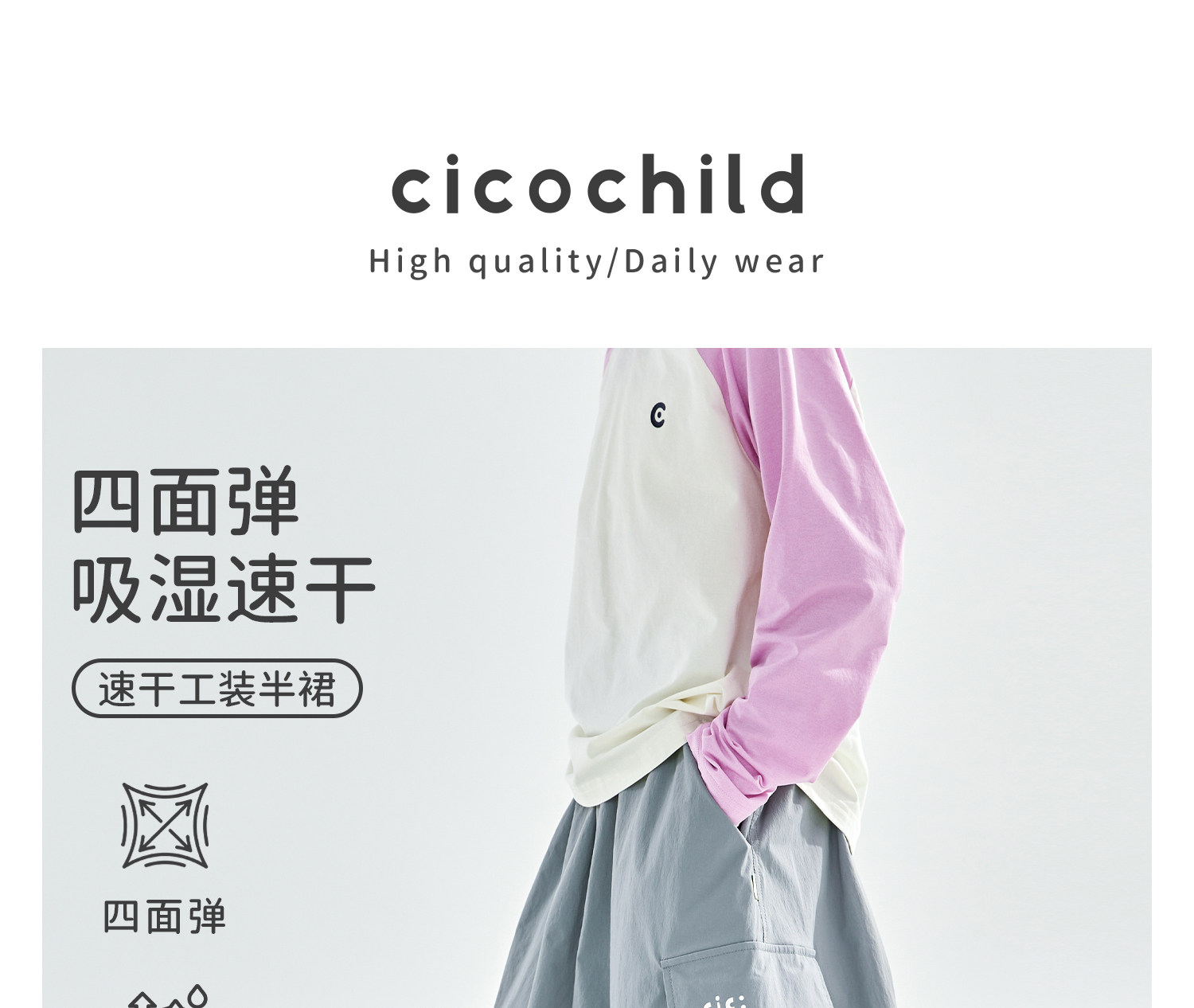 cicochild26年春季新款亲子中大女童速干工装半裙四面舒弹A字裙