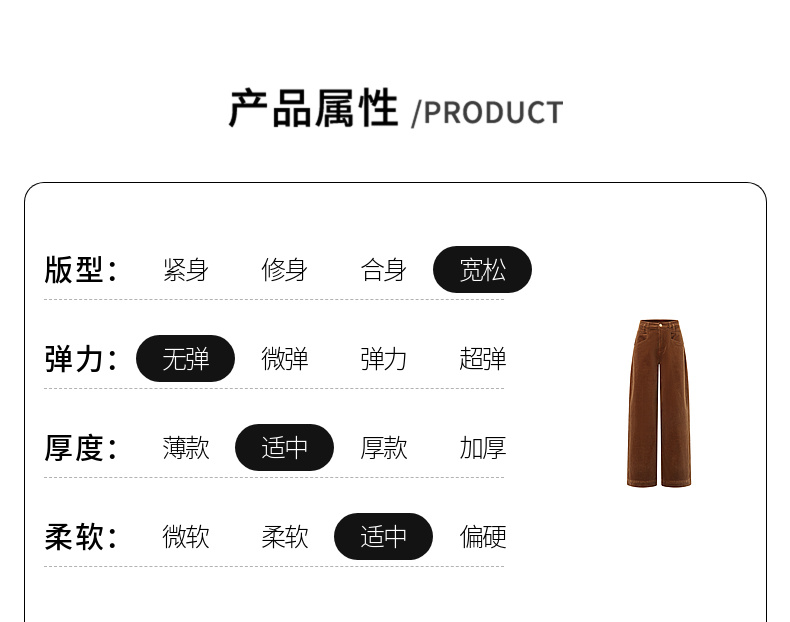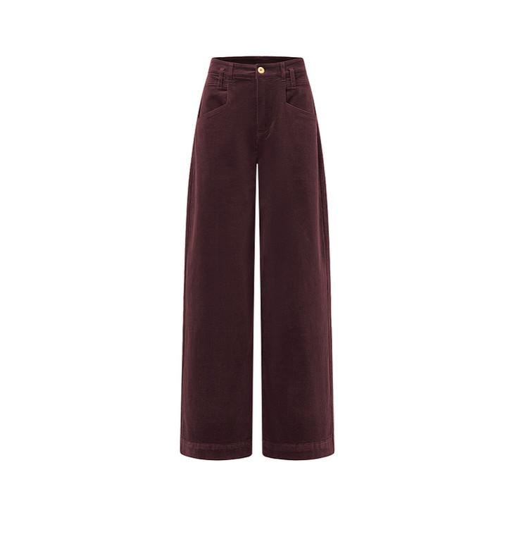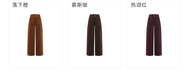 天猫同步【Row极简风】拉夏贝尔/La Chapelle复古灯芯绒裤子女美拉德直筒阔腿裤~梨形身材遮胯显瘦