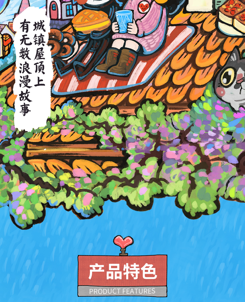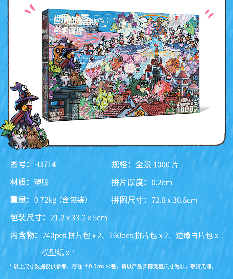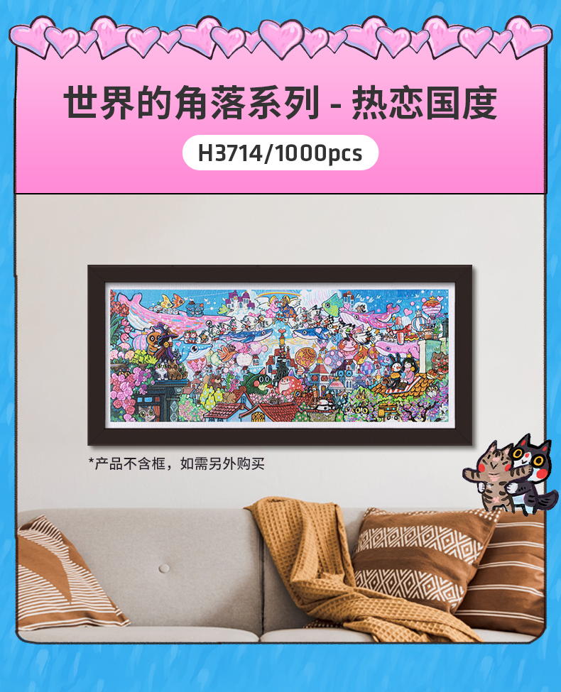 1000片 平面塑料拼图 H3714 全景长版拼图-泡面-世界的角落系列-热恋国度