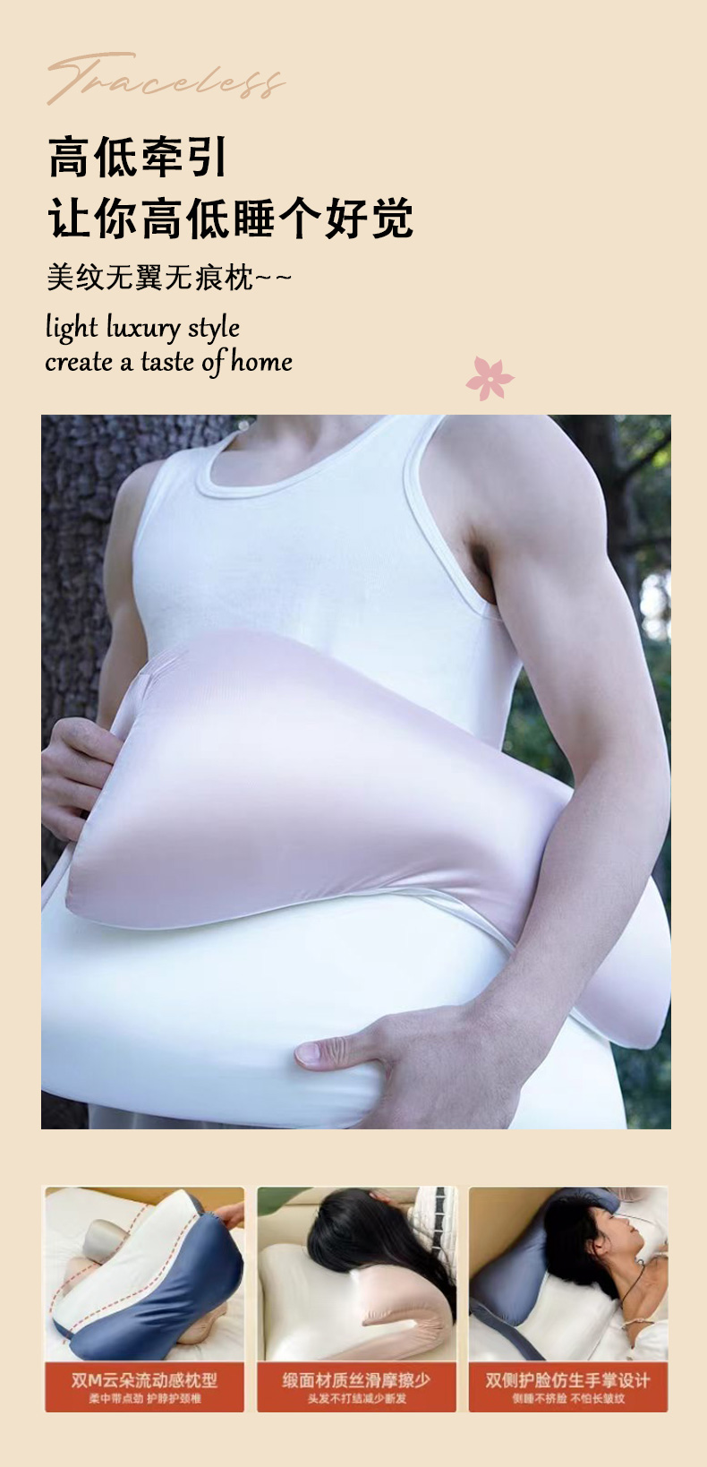 优选丨【爆款美纹云翼美睡枕 无痕枕】高低牵引设计,双M云朵枕型护脖护颈椎,双侧护脸侧睡不挤脸,不怕长皱纹高低给你一个好睡眠