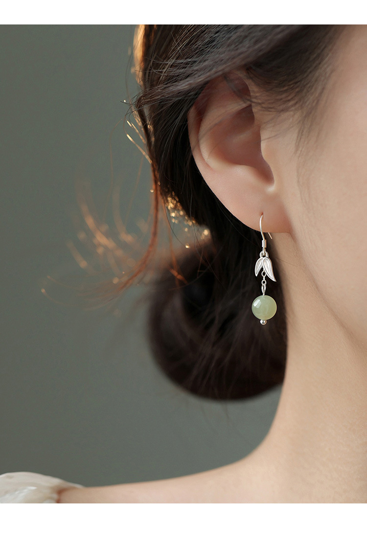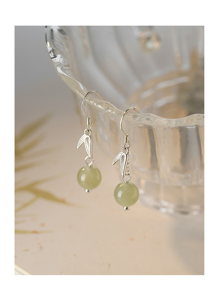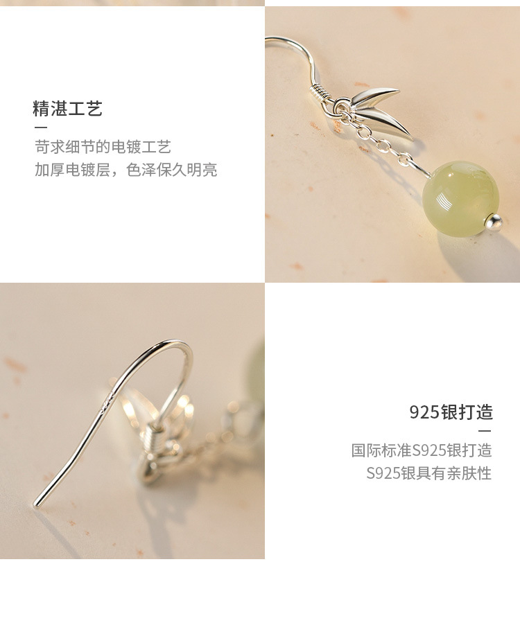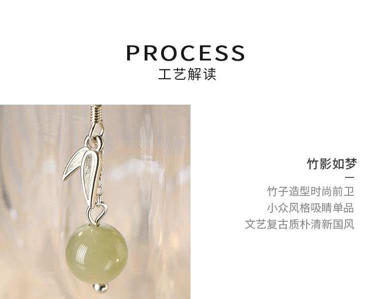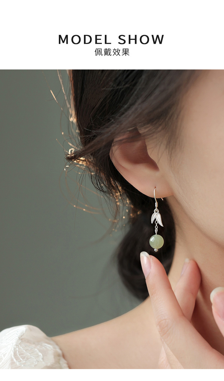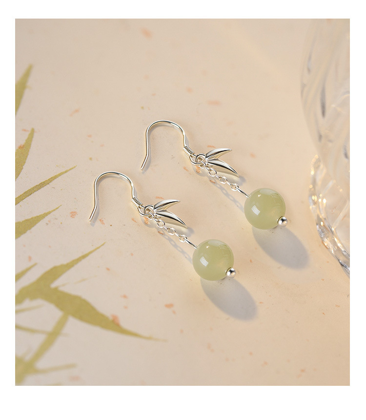 【玉竹·和田玉纯银耳坠】敦煌小众S925纯银竹叶和田玉耳钉 女款新中式古风耳环耳坠气质耳饰