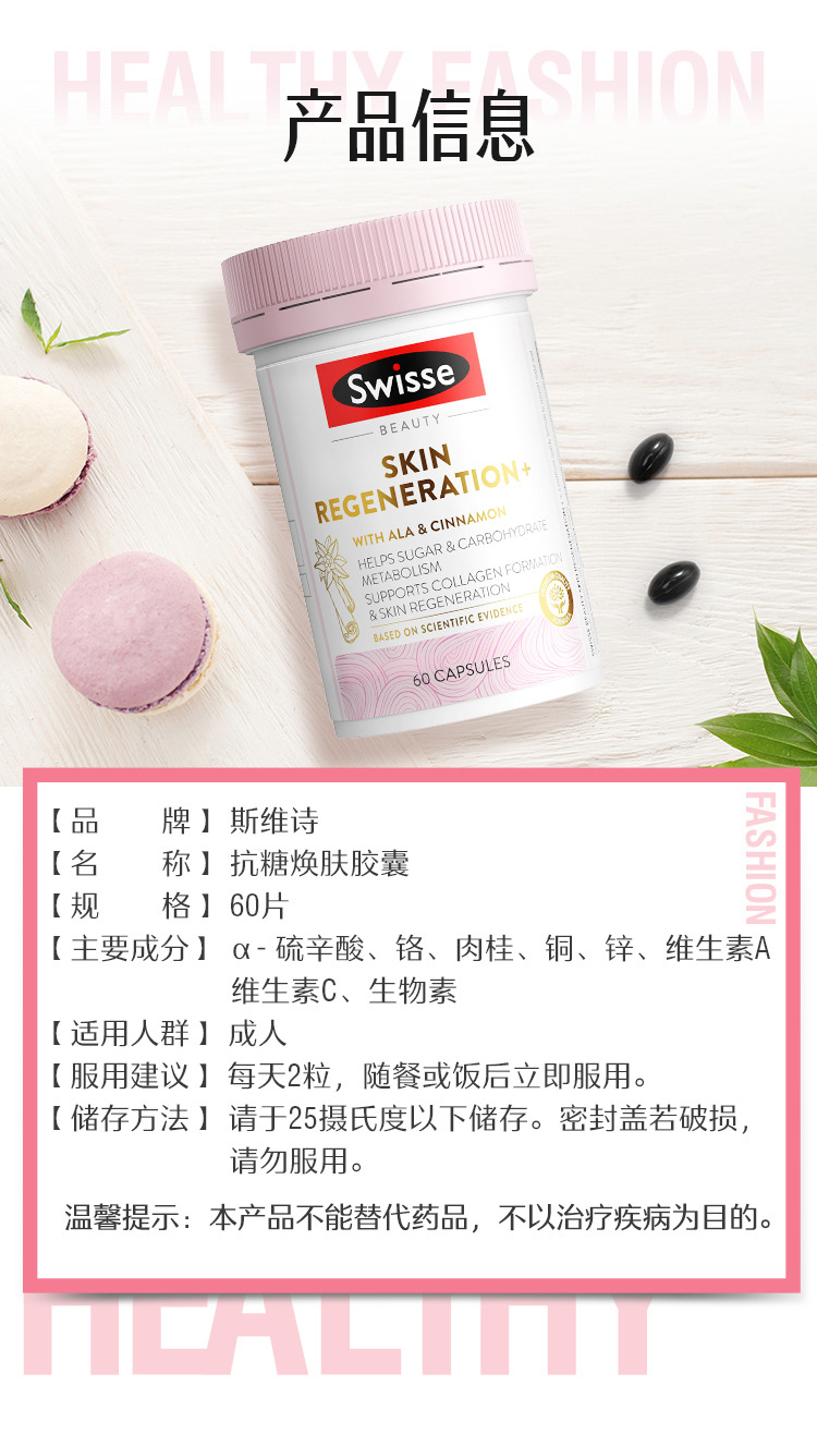 【包邮包税】Swisse升级版抗糖焕肤胶囊60粒