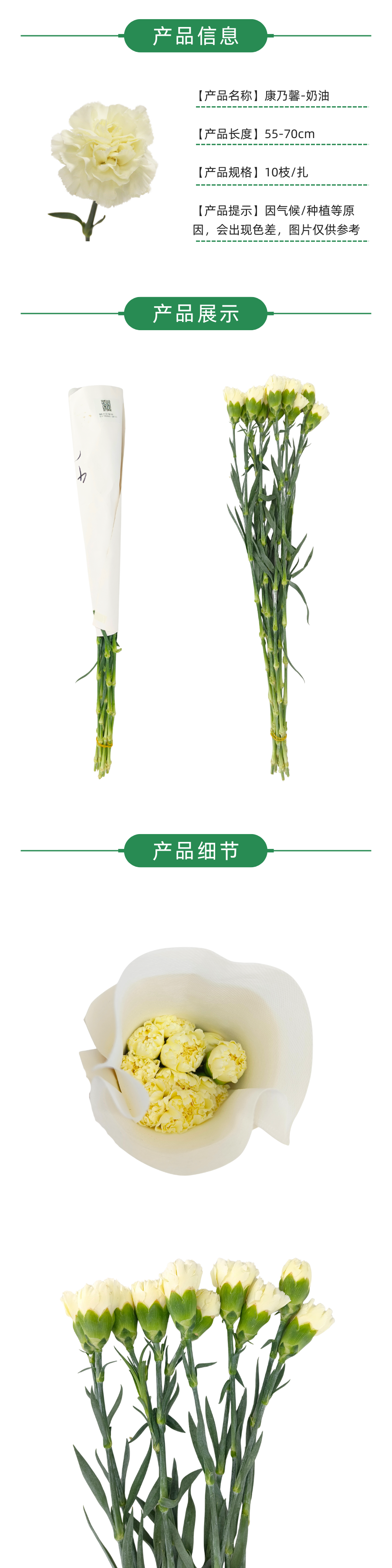 单头康乃馨-奶油 10枝1扎