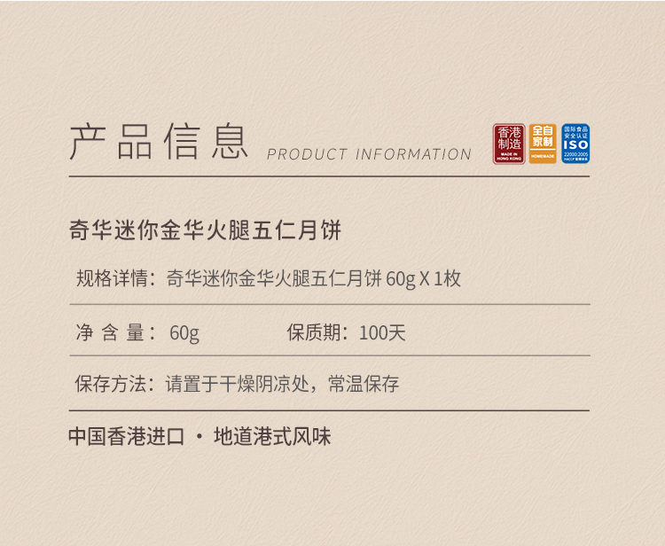 【0.01元—积分兑换奇华迷你金华火腿五仁月饼1枚】金华火腿迷你月饼小礼盒进口月饼单枚礼盒装广式糕点