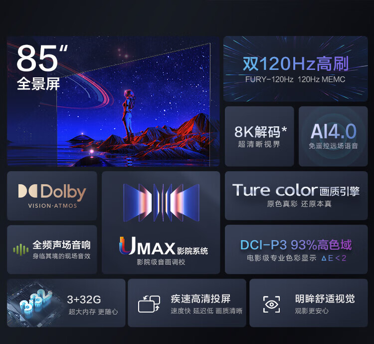 长虹电视85D5 85英寸4K超清120Hz高刷电视+HT-S4002.1 声道 杜比音效电视音响
