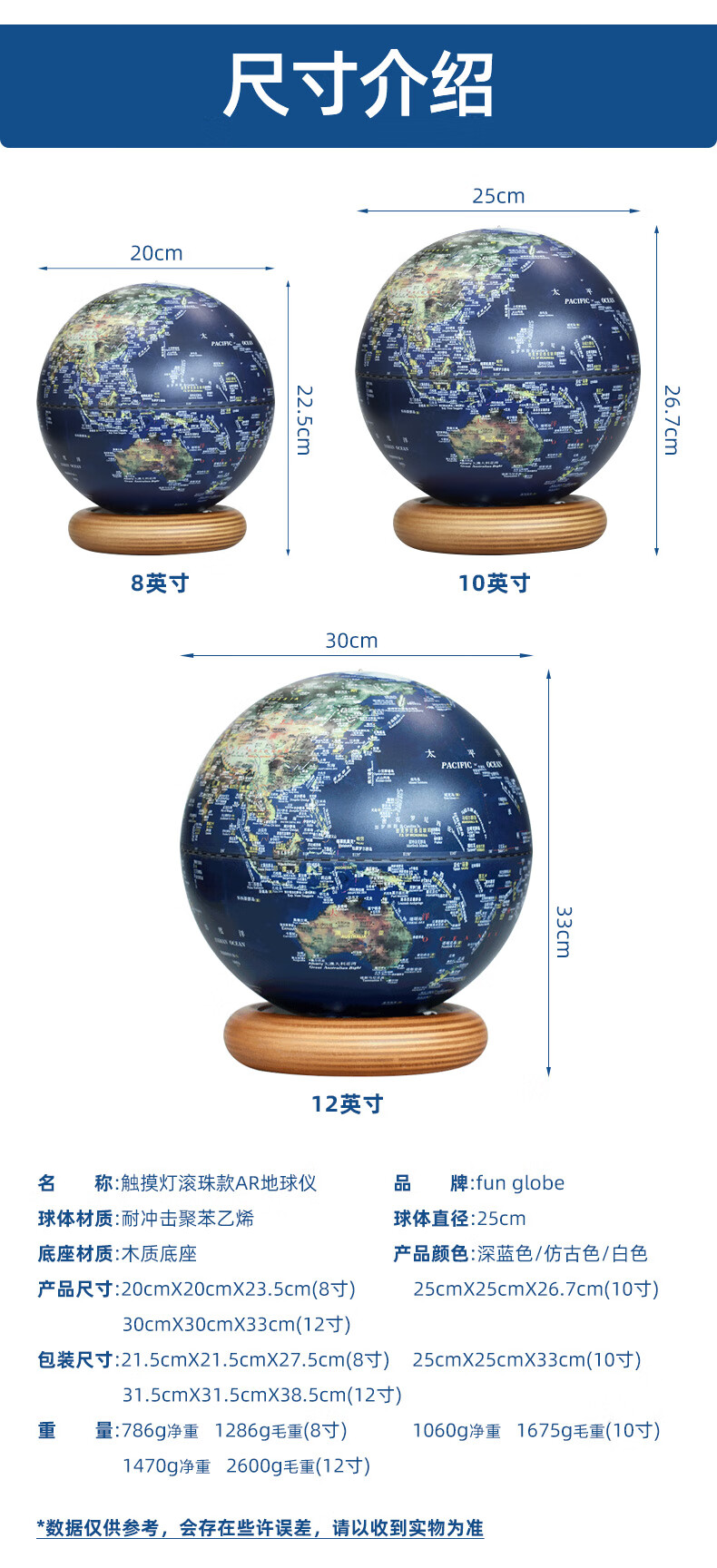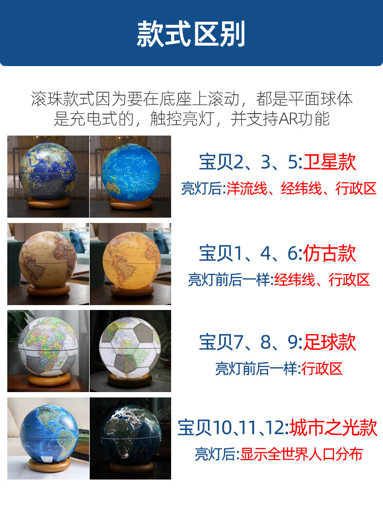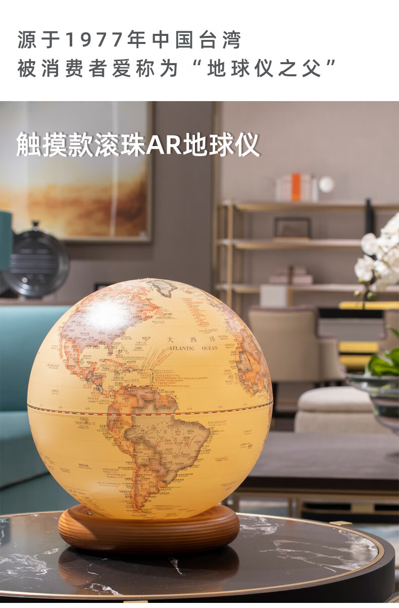 FunGlobe 朋宸地球仪 趣味滚珠仿古款触摸灯AR地球仪