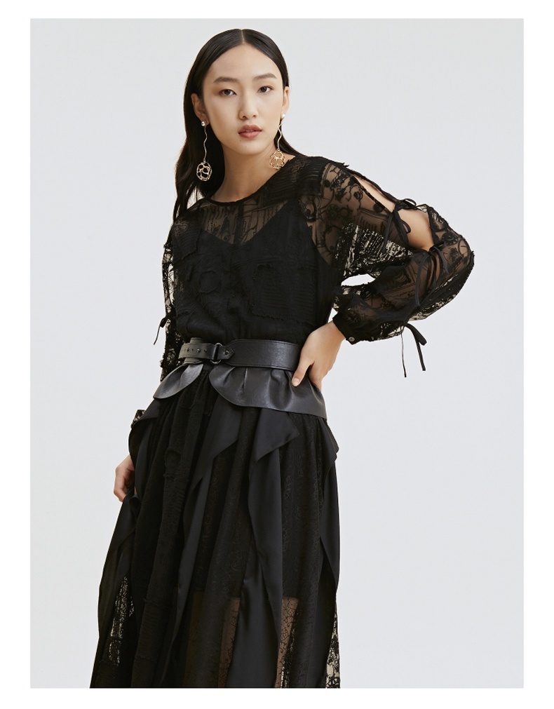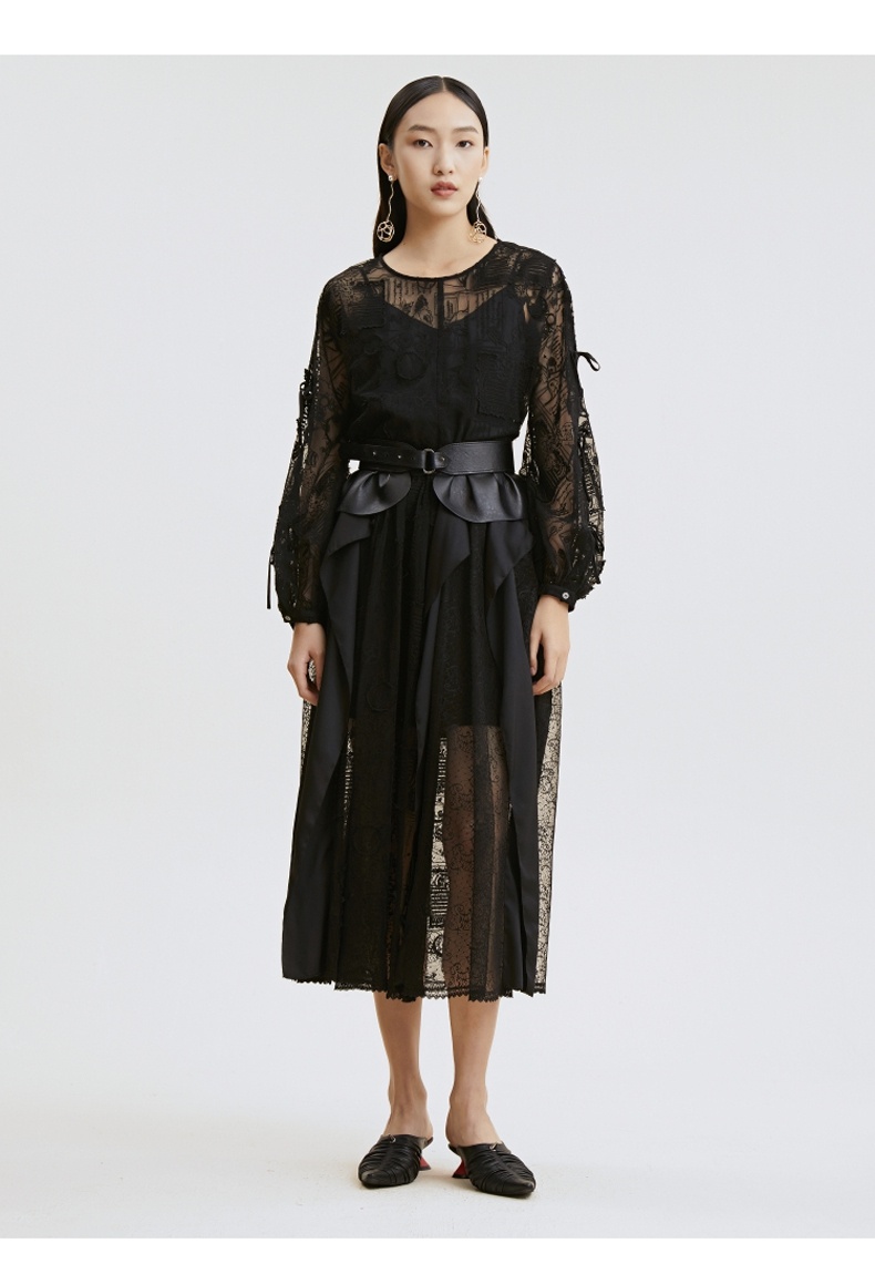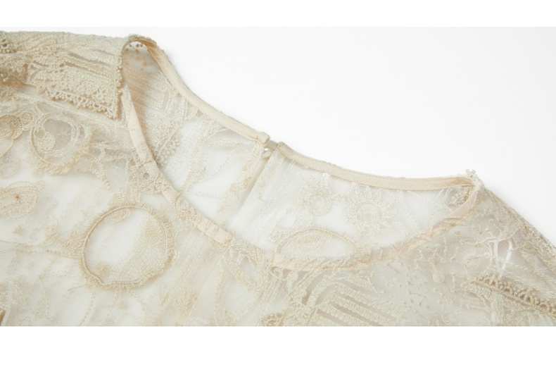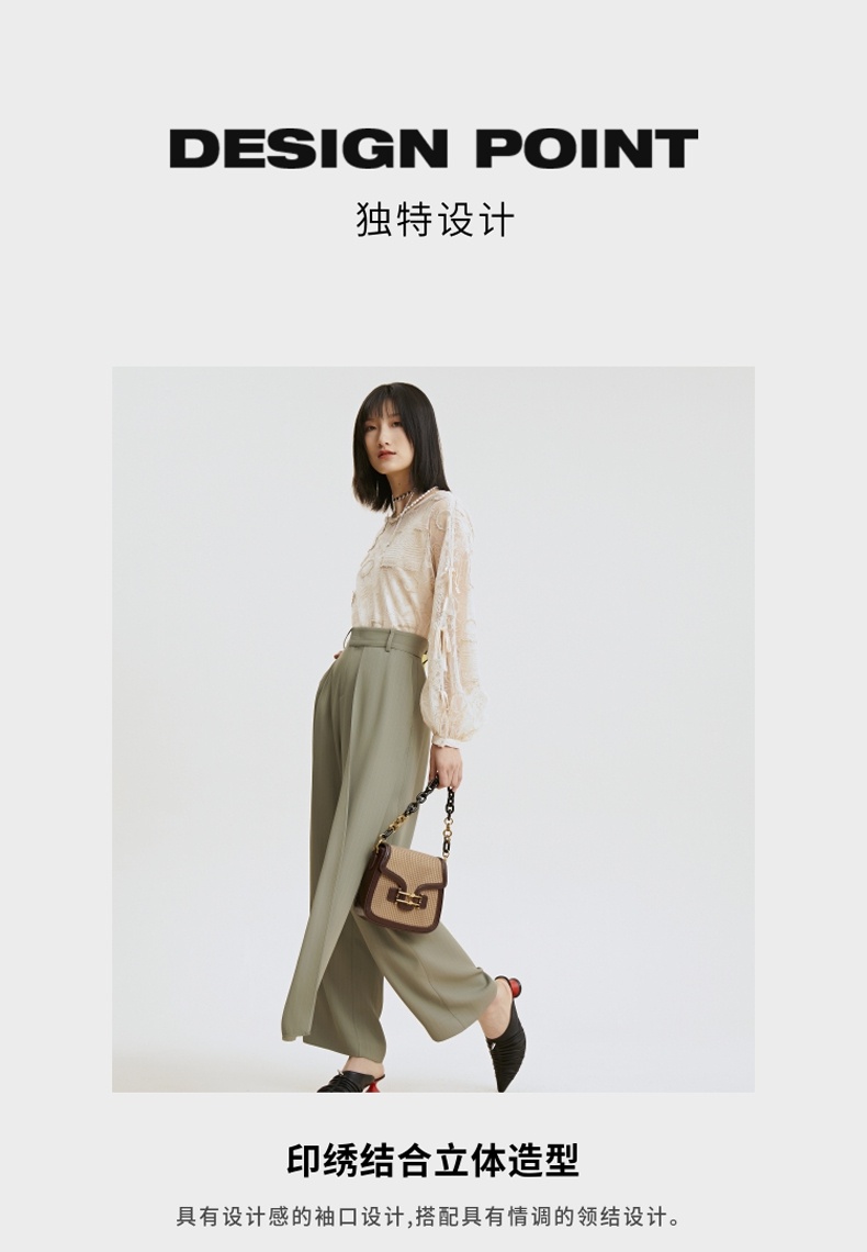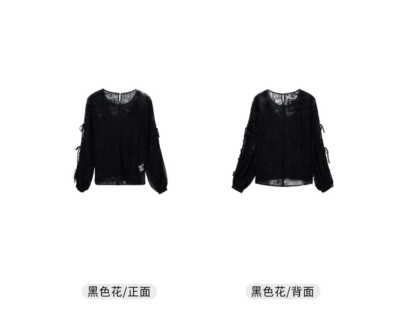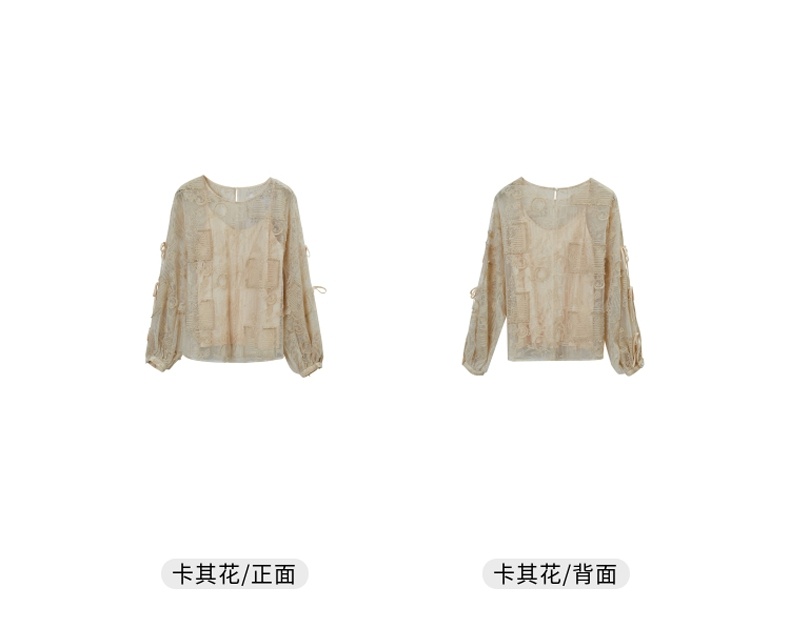 谜底衬衫2021夏季新款宽松绣花长袖蕾丝衫灯笼袖上衣女213GS1684