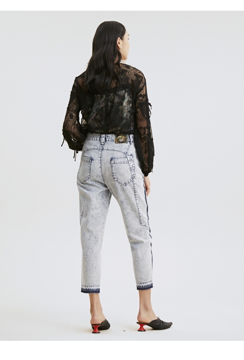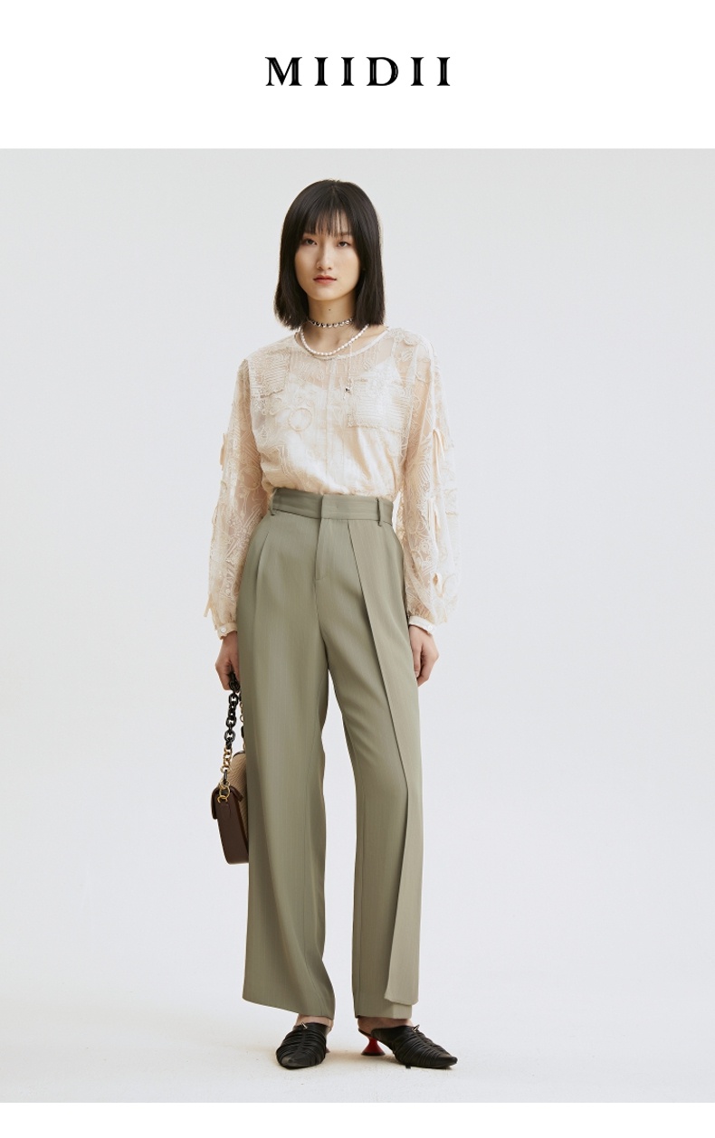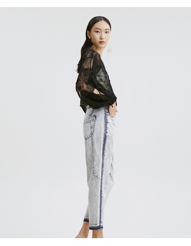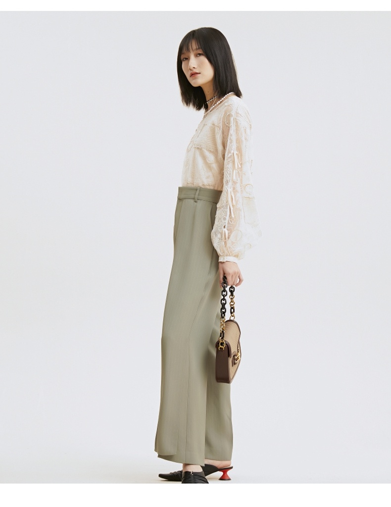 谜底衬衫2021夏季新款宽松绣花长袖蕾丝衫灯笼袖上衣女213GS1684