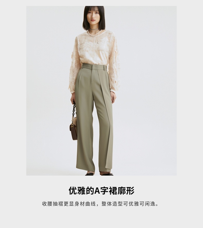 谜底阔腿裤长裤2025冬季新品舒适弹力设计感撞色缝线女254MK1699