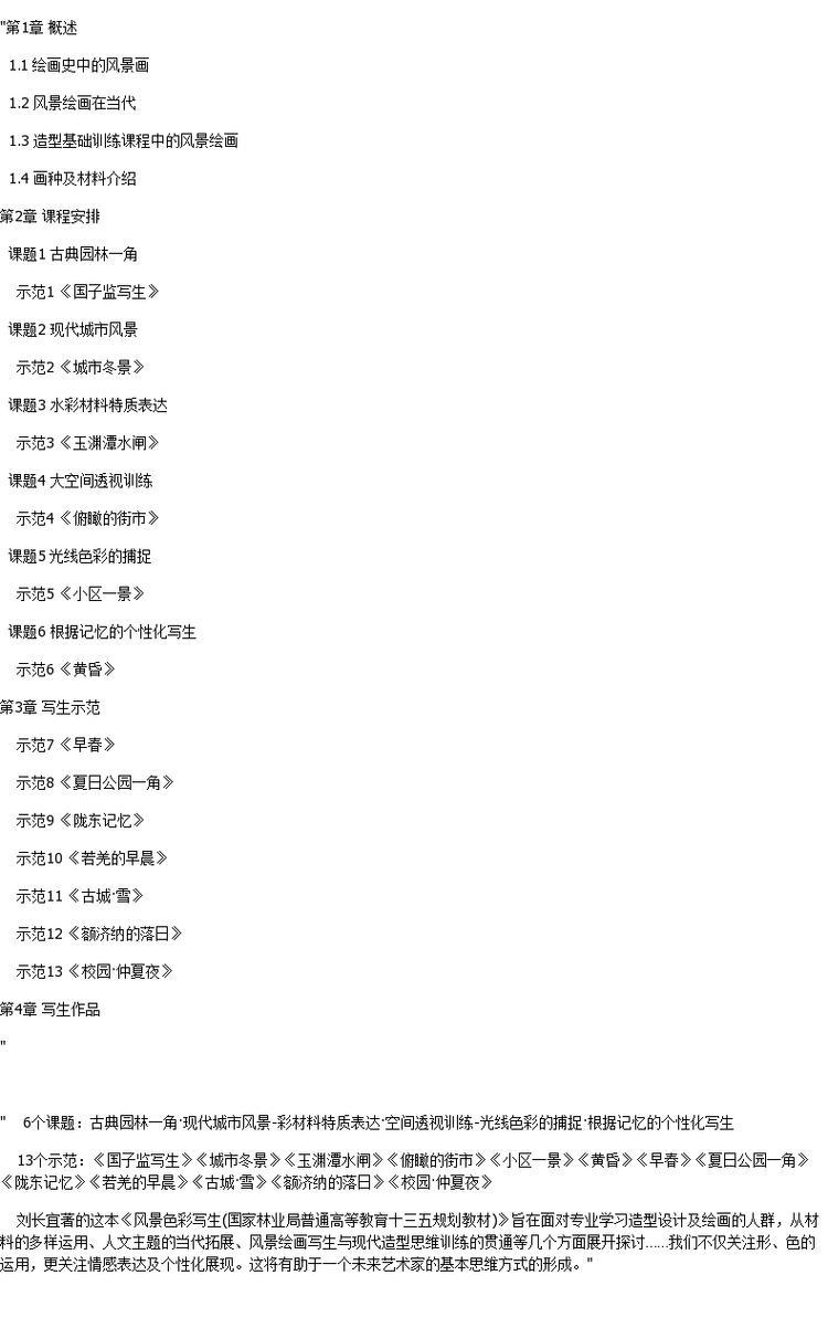 风景色彩写生 刘长宜 9023普通高等教育十三五规划教材 林业局普通高等教育十三五规划教材 中国林业出版社