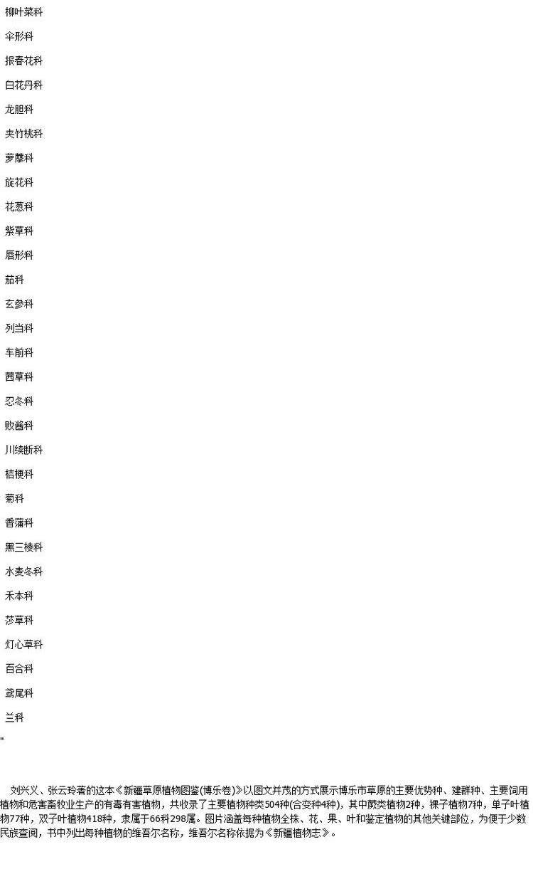 新疆草原植物图鉴(博乐卷) 8612 蕨类植物 裸子植物门 被子植物门 植物种类 全株 花 果 叶 鉴定植物 中国林业出版社 畅销书
