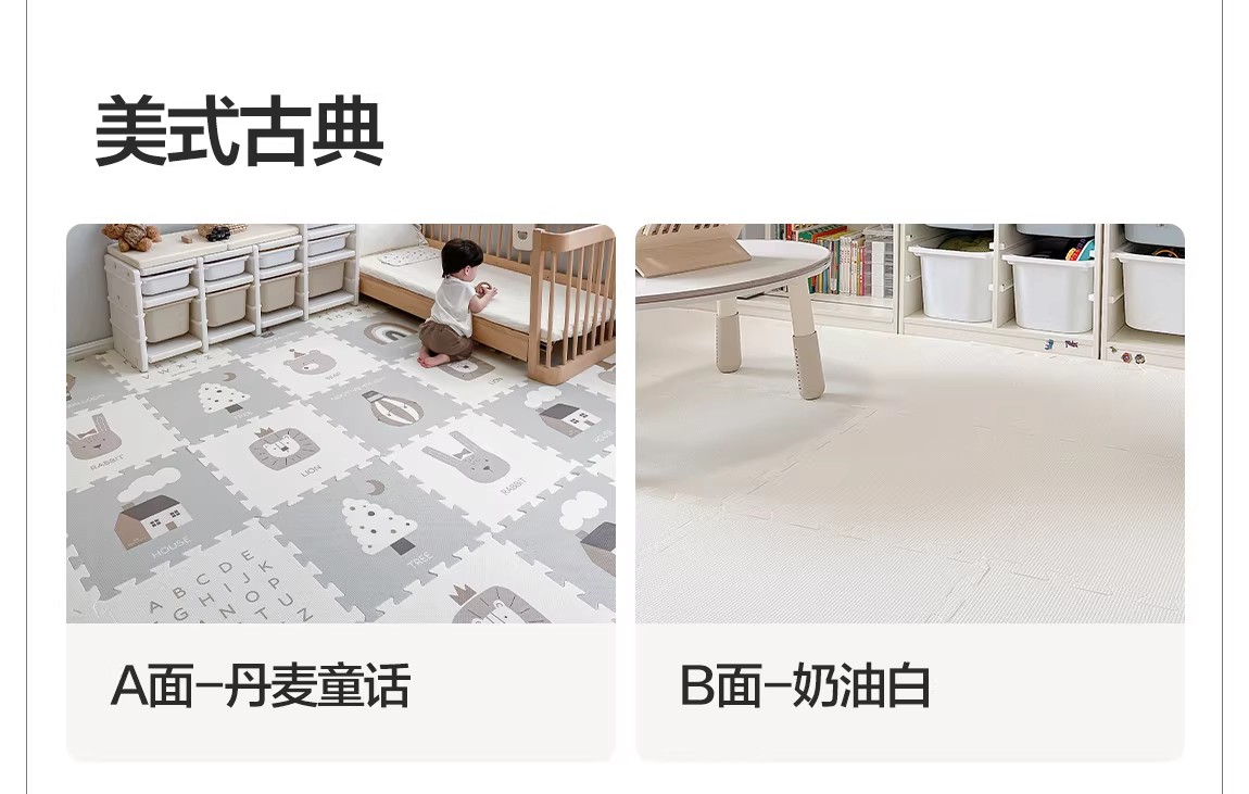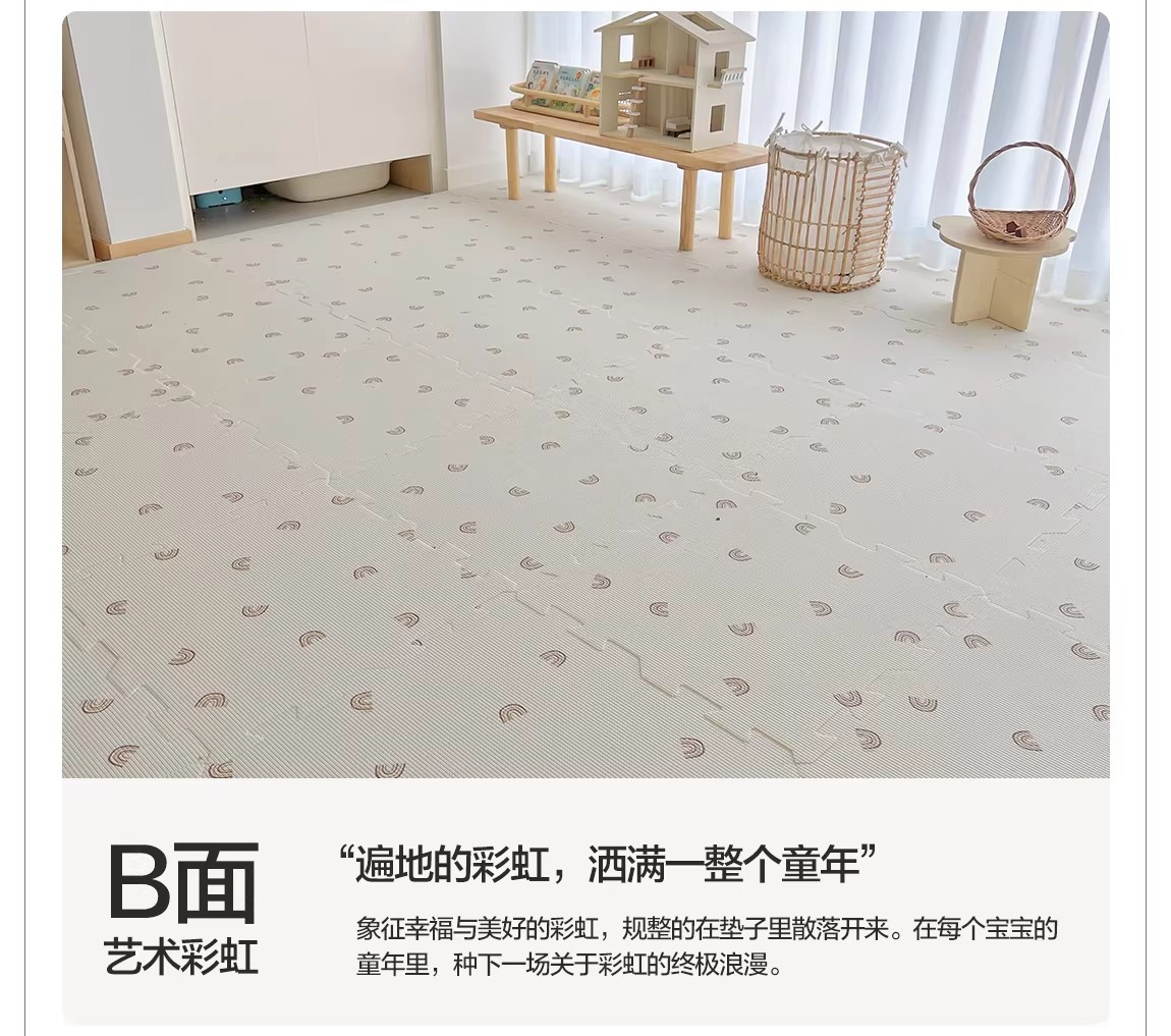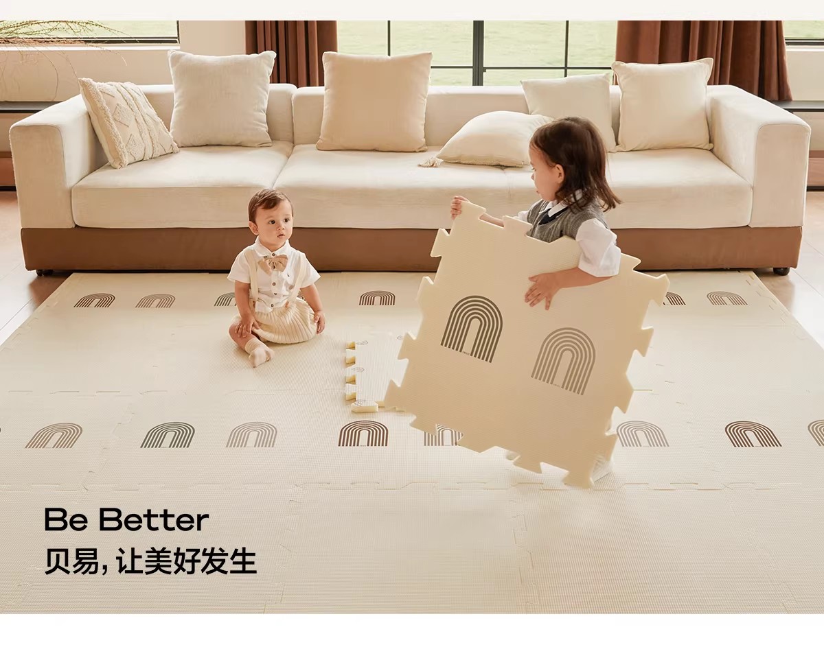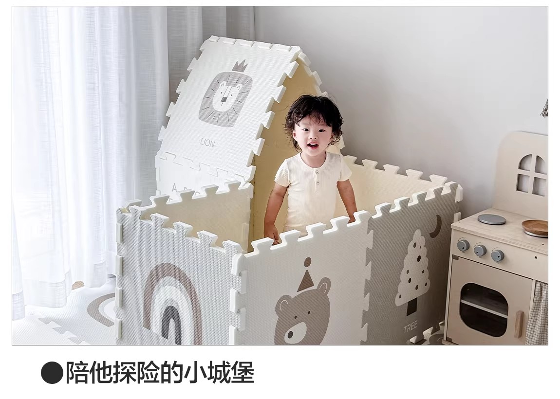 贝易宝宝爬爬垫婴儿童加厚家用无甲醛XPE防摔拼接地垫客厅爬行垫(会员部分选项:9/12/18片送小熊收纳筐)【围栏+爬行垫套餐还可换购独角兽摇马(5合1无座垫款)】