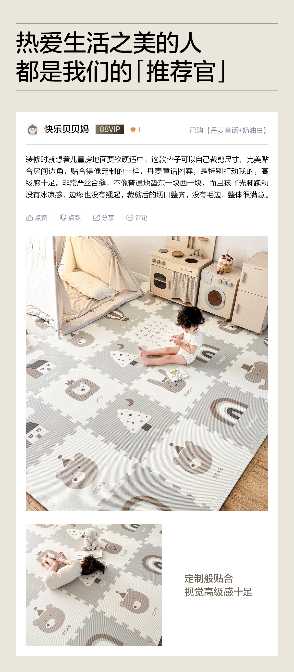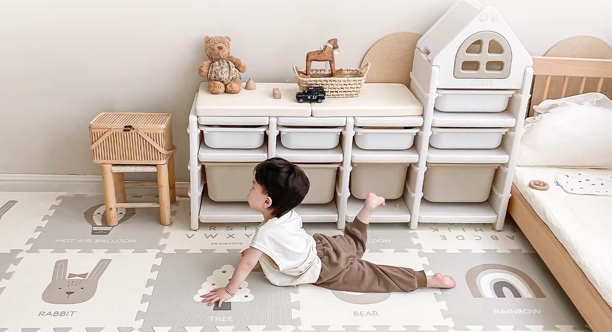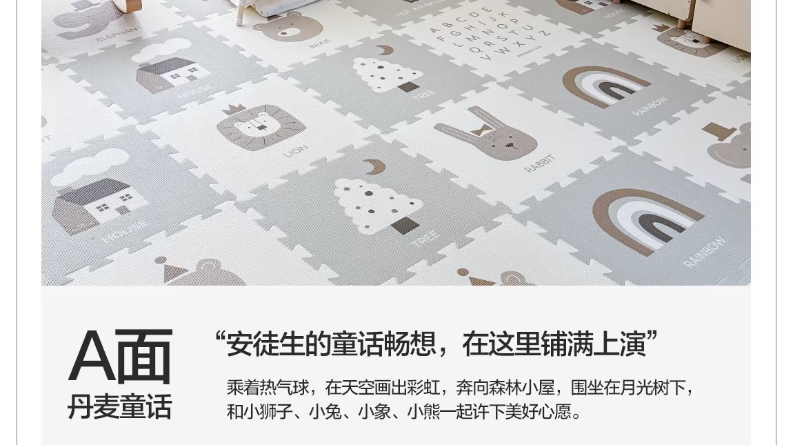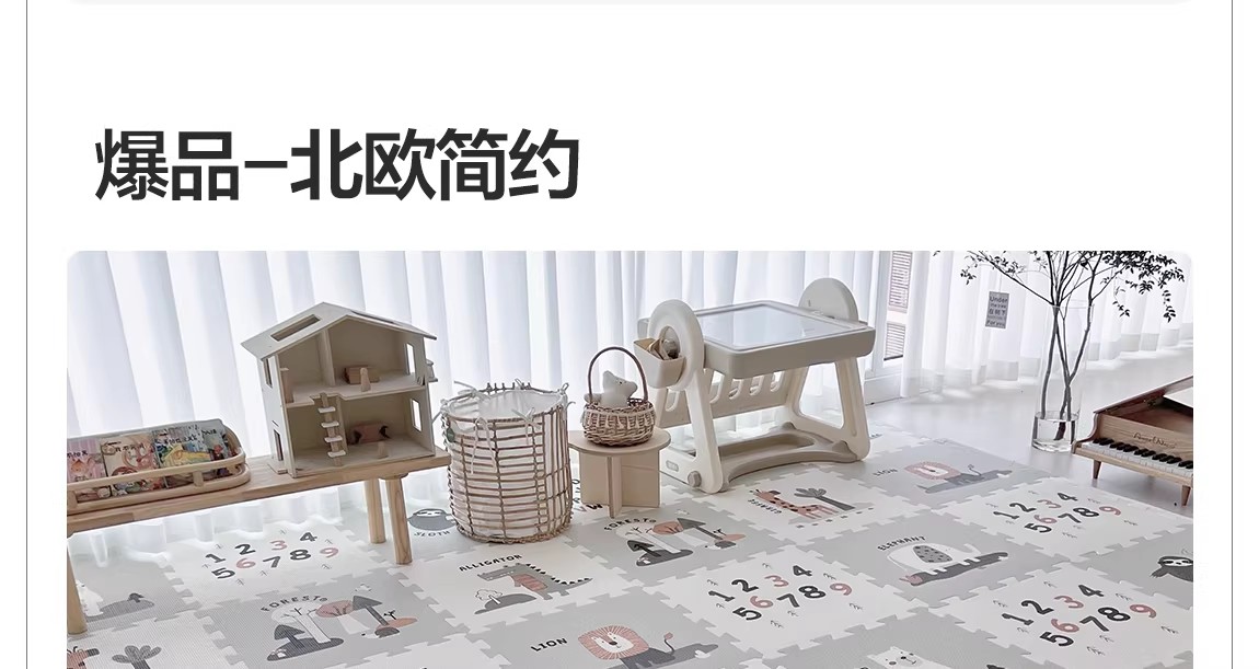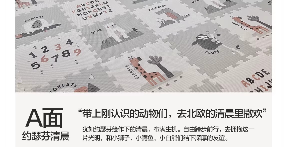 贝易宝宝爬爬垫婴儿童加厚家用无甲醛XPE防摔拼接地垫客厅爬行垫(会员部分选项:9/12/18片送小熊收纳筐)【围栏+爬行垫套餐还可换购独角兽摇马(5合1无座垫款)】