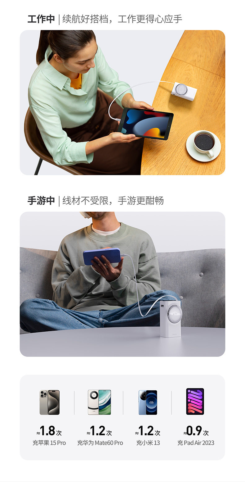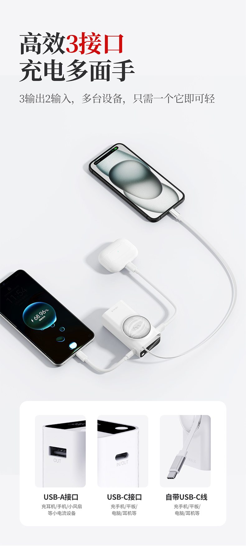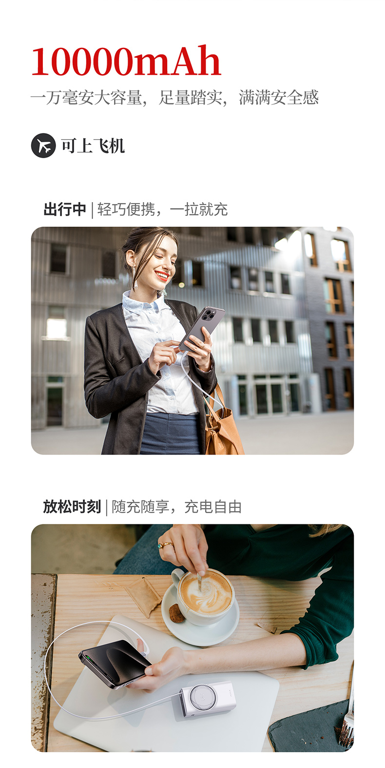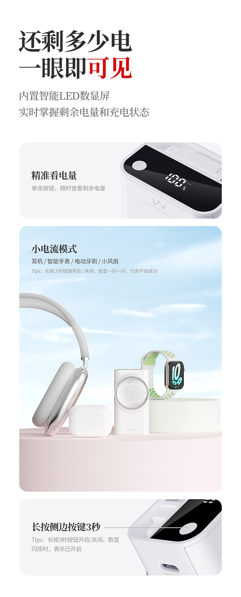 【国家3C认证】爱沃可(iWALK) LPR001 L/C 10000毫安双向30W快充伸缩线充电宝 自带线30W双向快充,解锁快充新体验。新伸缩线设计,拉上就充,清爽收纳。