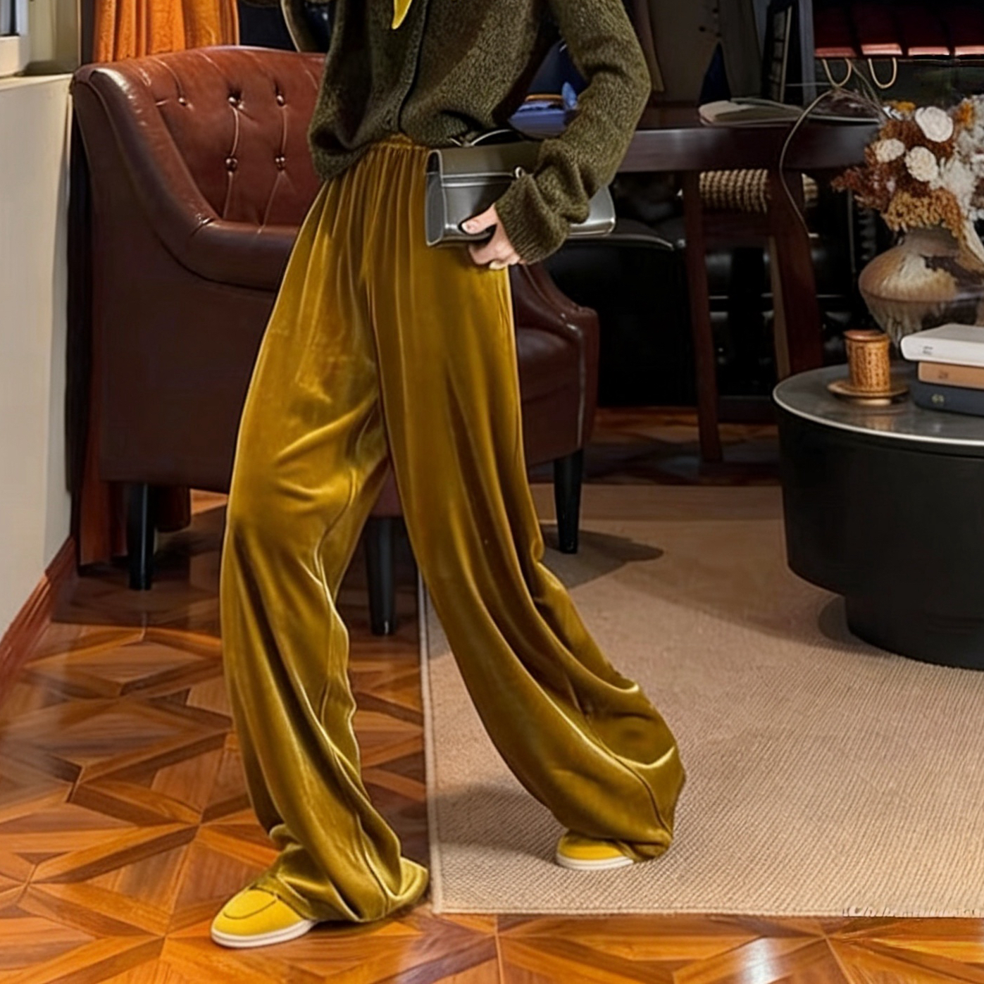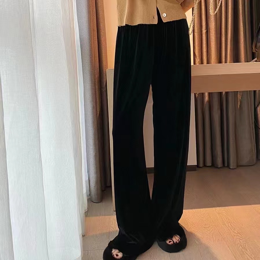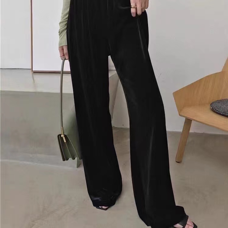 纸片人~100真丝丝绒阔腿裤女高腰垂感宽松显瘦直筒长裤