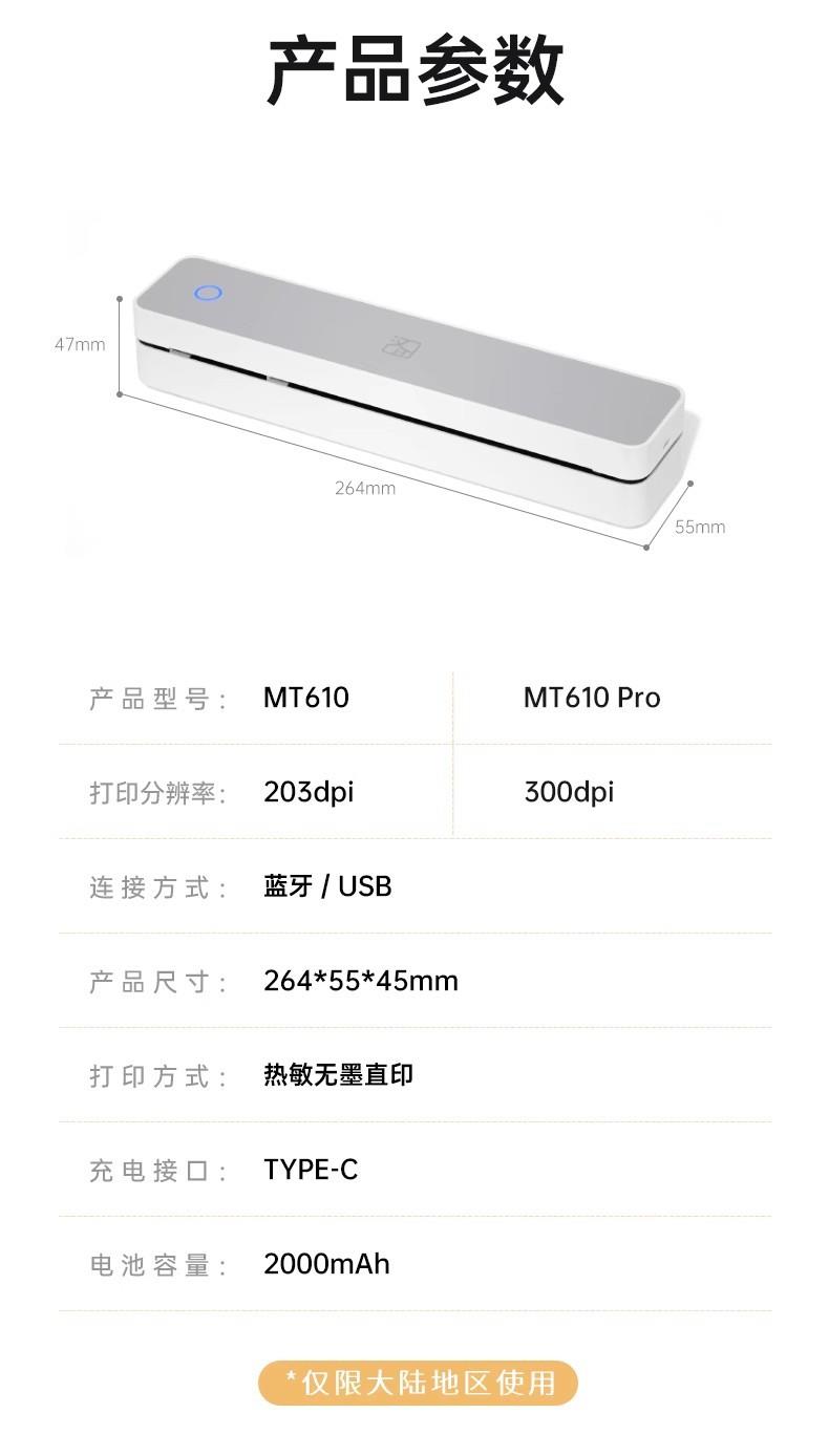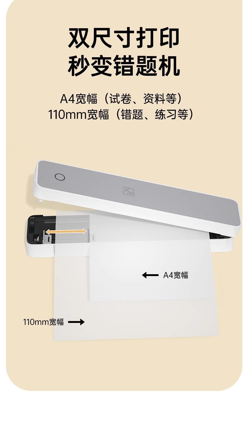 汉印MT610 PRO家用作业打印机手机蓝牙连接无线迷你便携小型A4学生用黑白热敏家庭试卷错题整理拍照扫描学习机