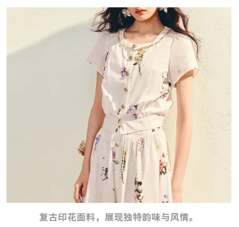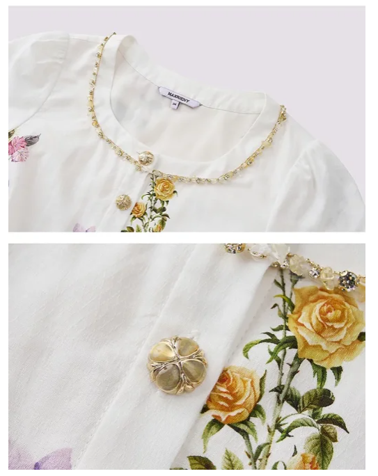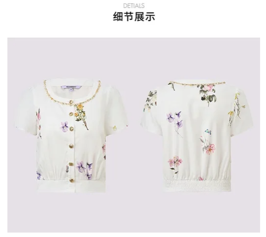 玛克门店发货:印花衬衫女修身显瘦高级感上衣25夏款淡人穿搭MS86TP051A10