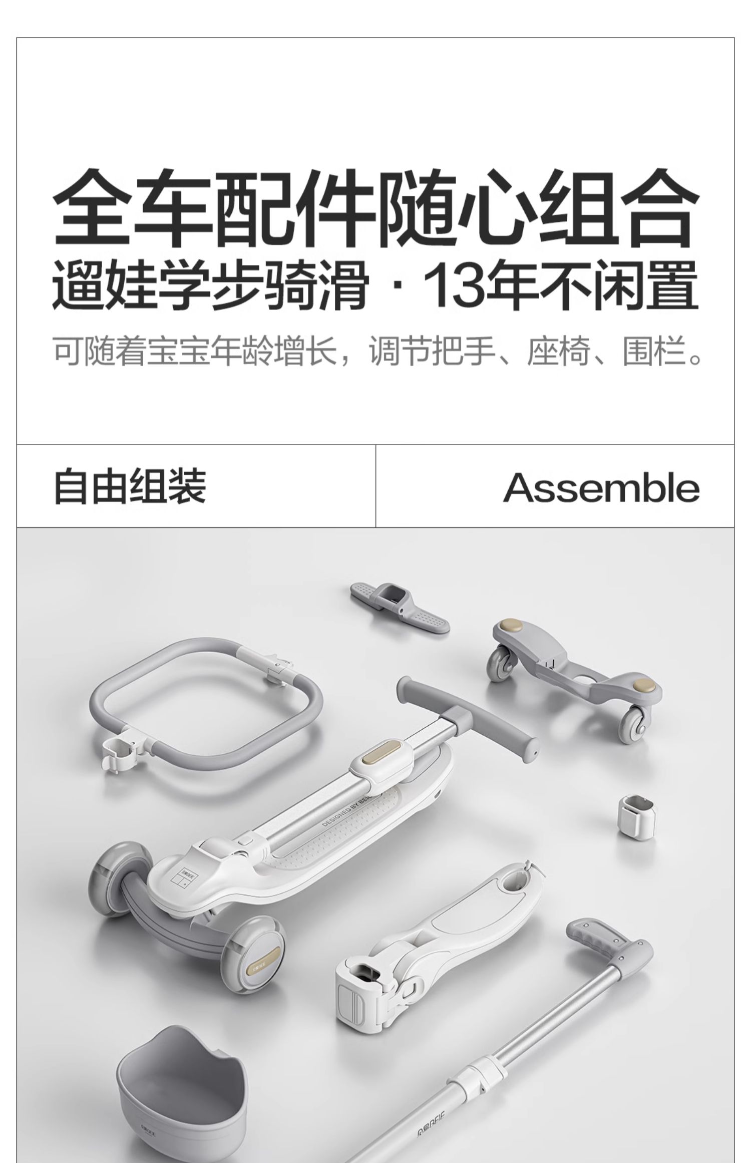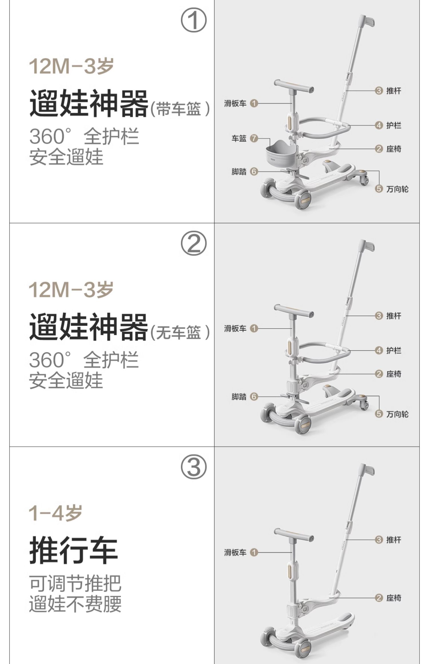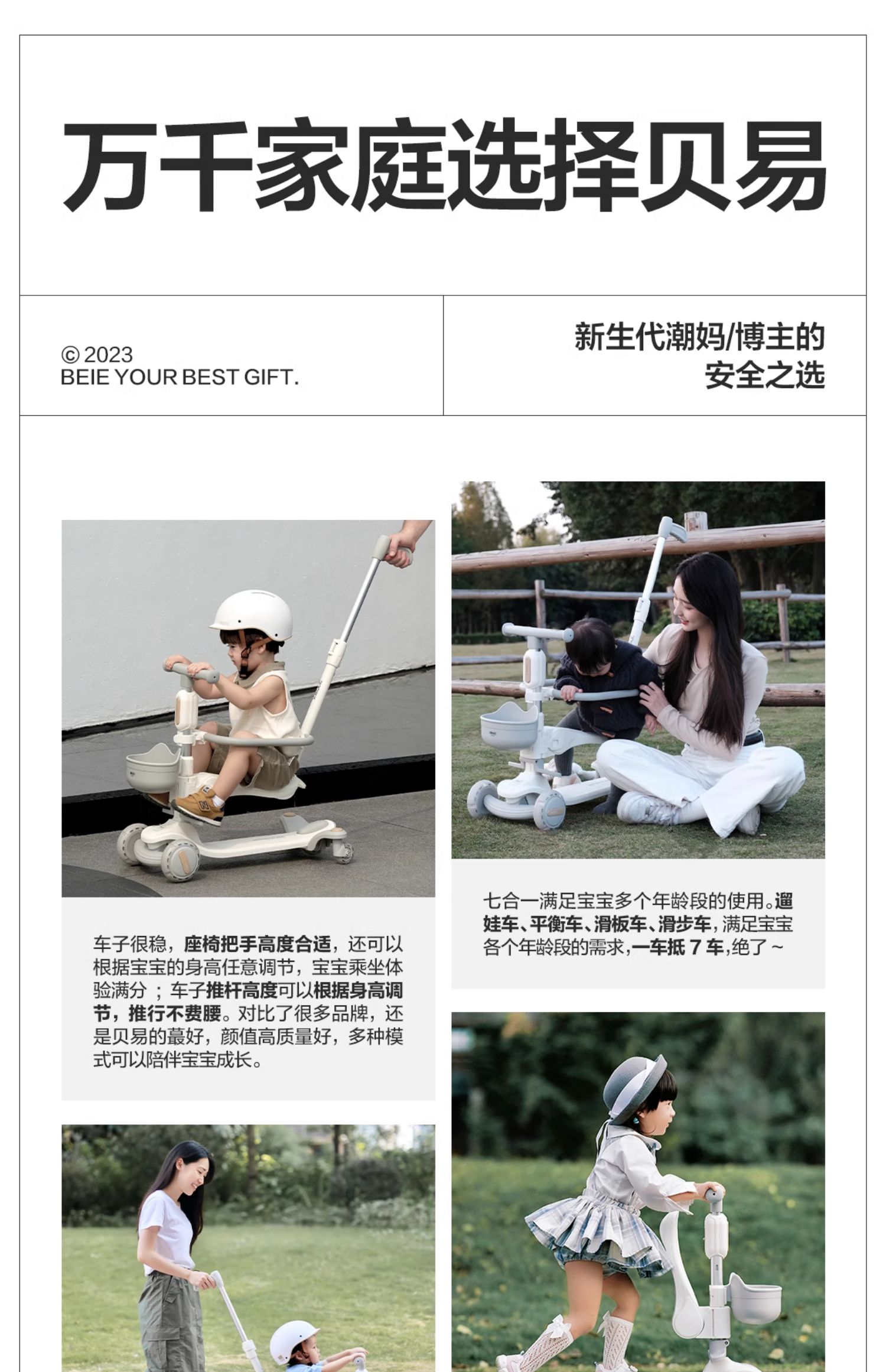 【限量秒杀】贝易探索家滑板车儿童1到3岁学步平衡车宝宝溜溜车七合一遛娃神器【咨询客服有惊喜】