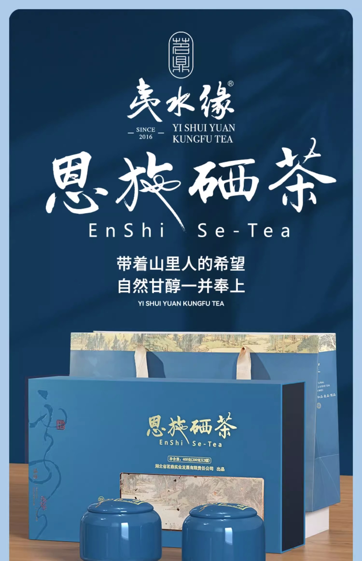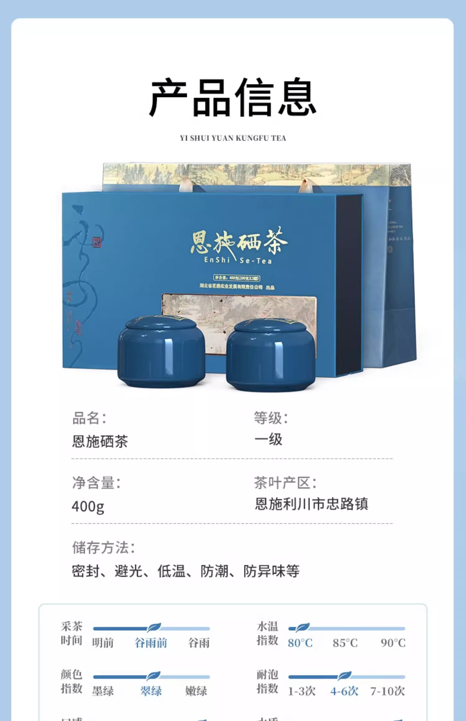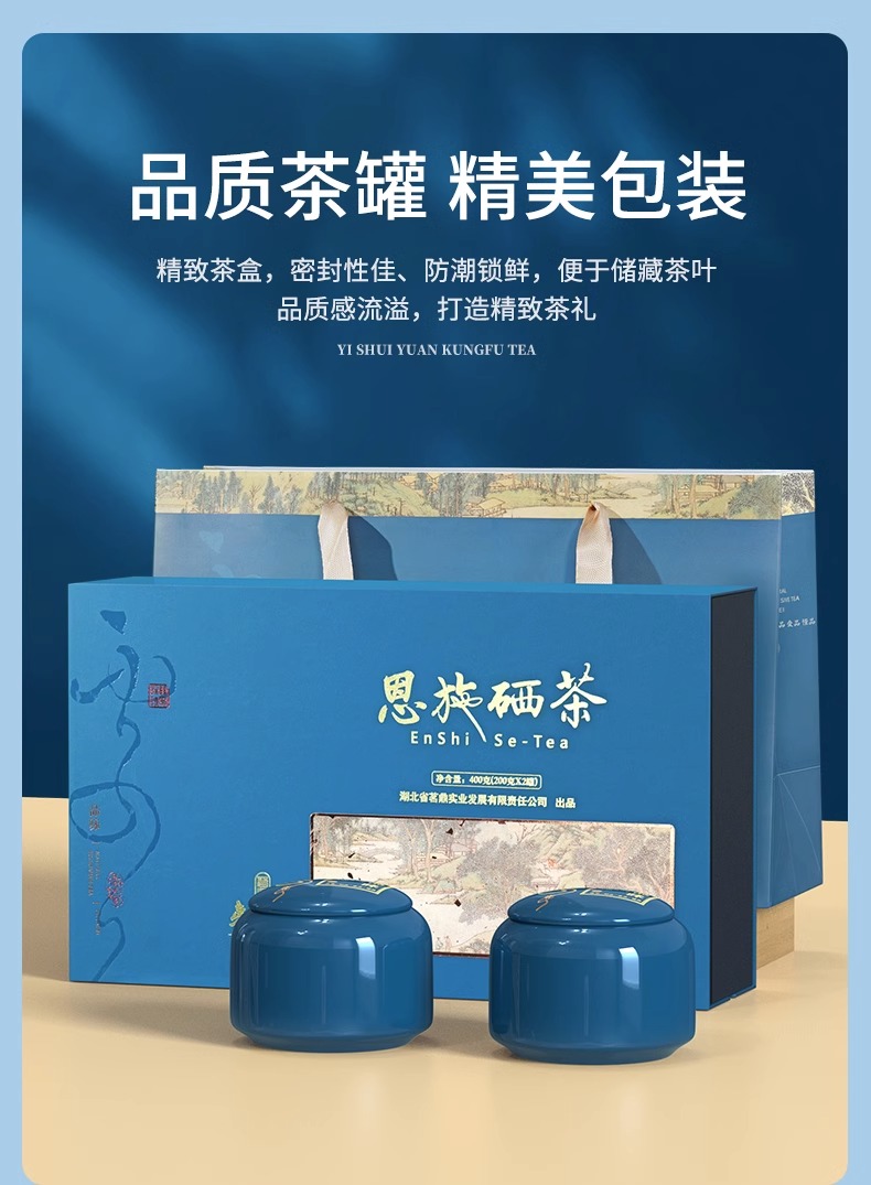 夷水缘湖北恩施绿茶陶瓷礼盒装2罐共400克