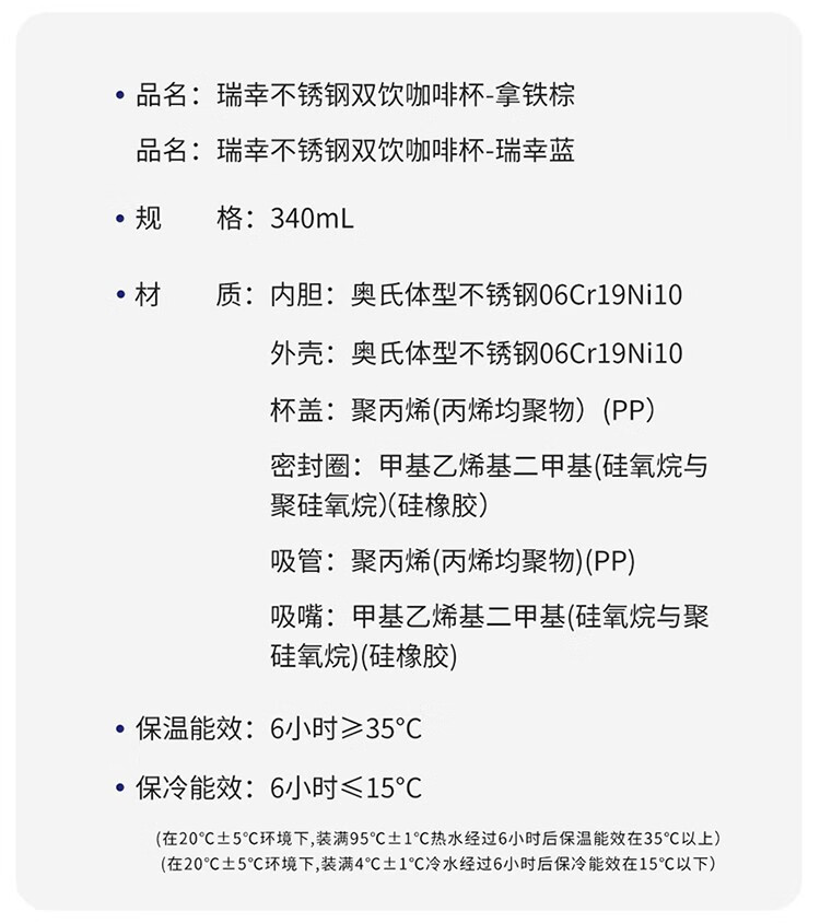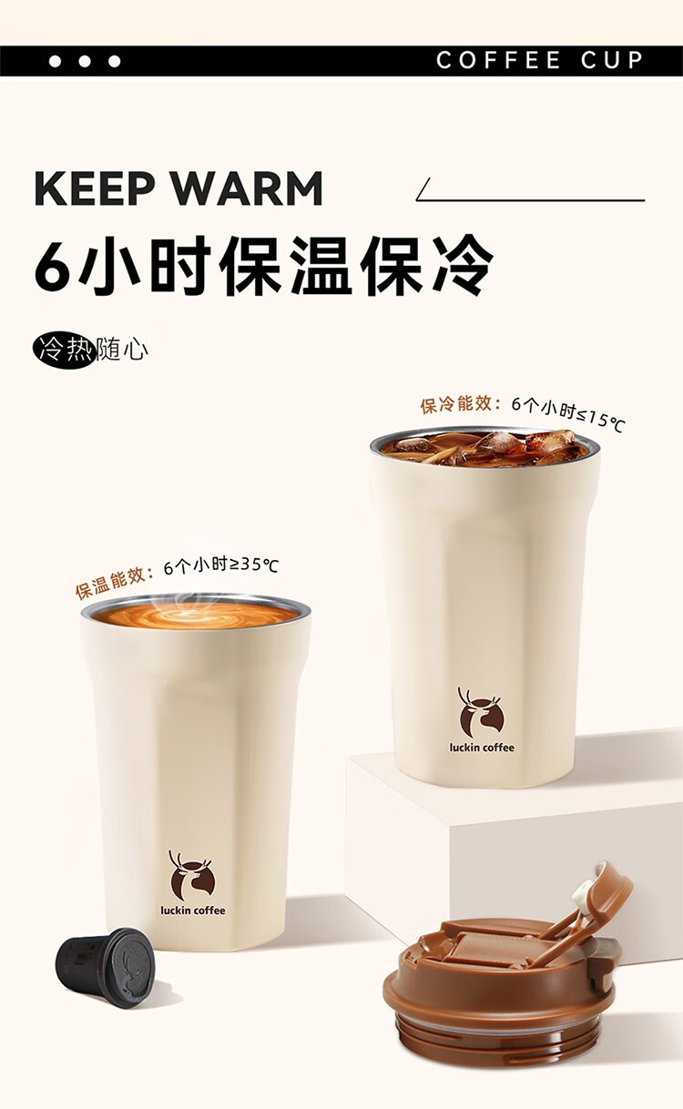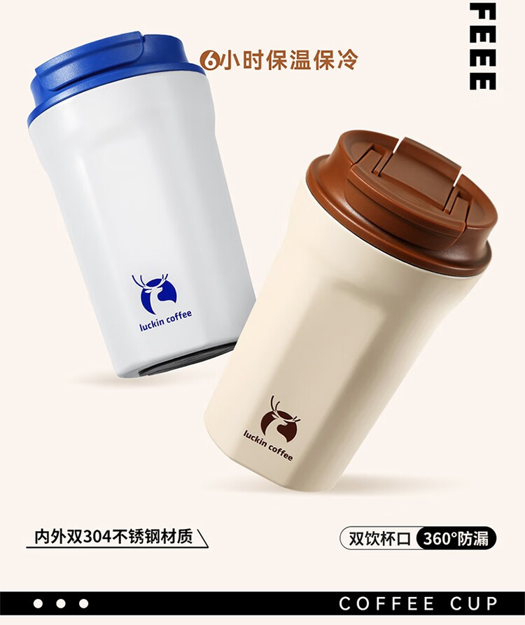 瑞幸咖啡 不锈钢保温杯双饮咖啡杯340ml瑞幸蓝