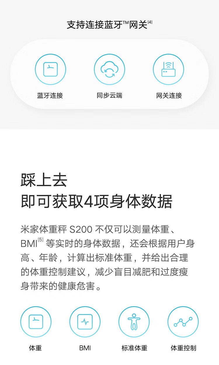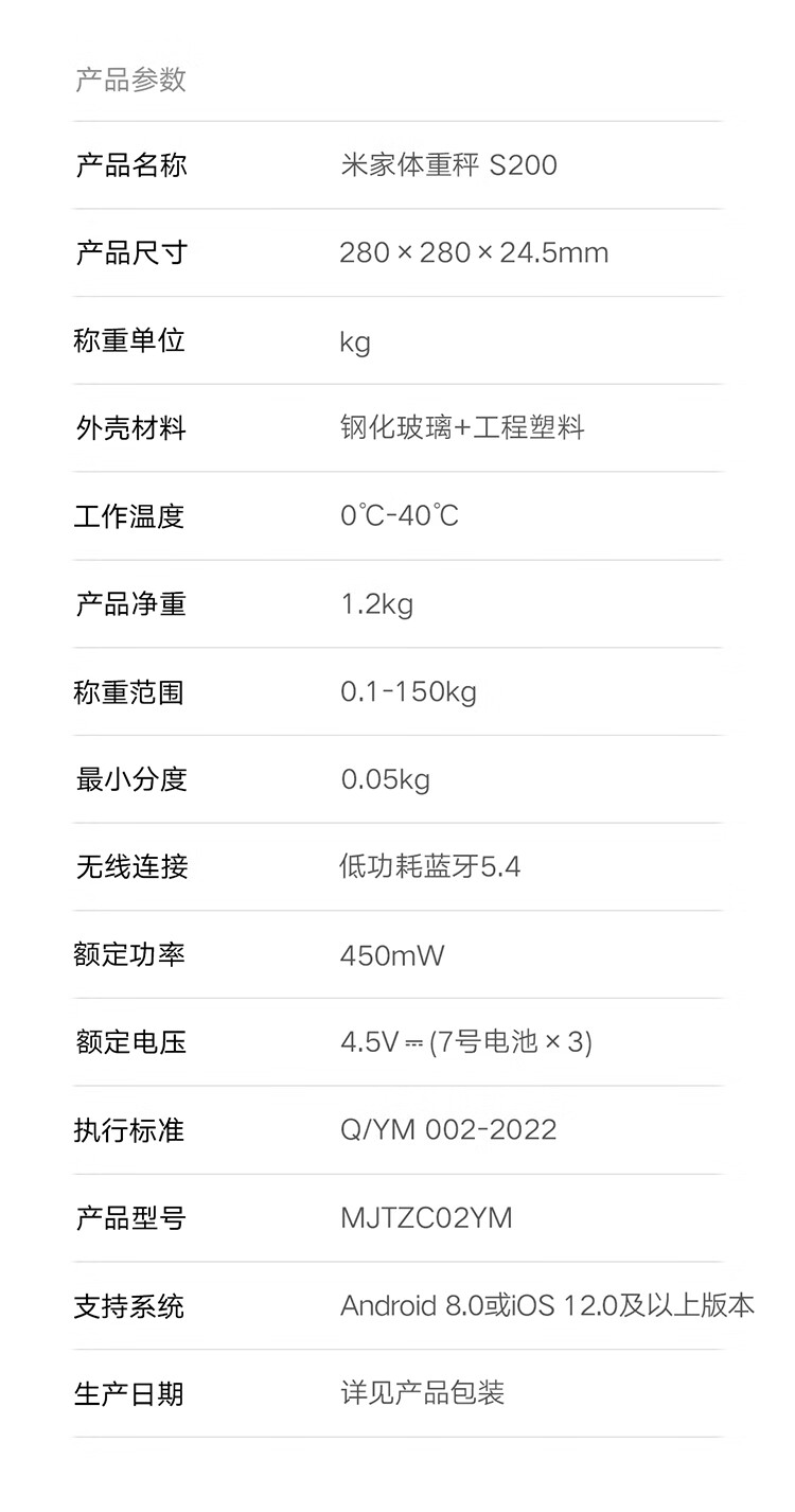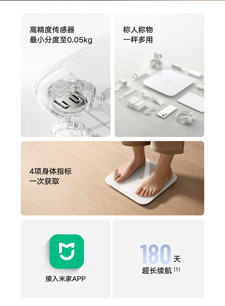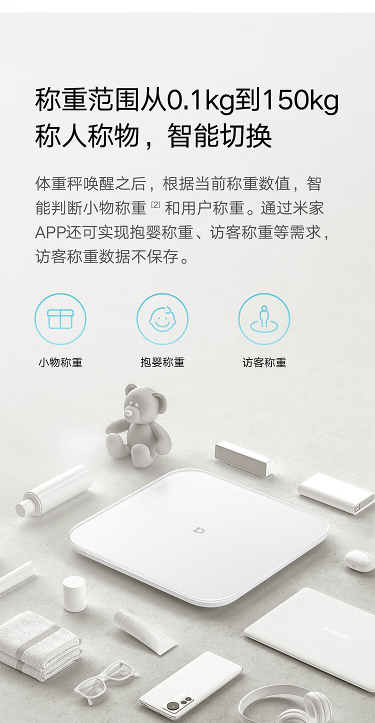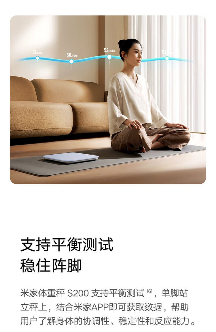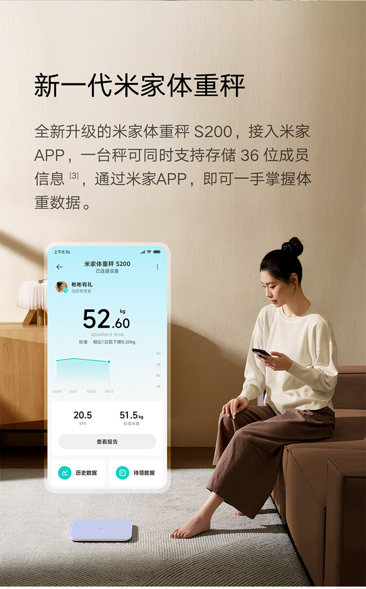 积分免费兑:米家(MIJIA)智能体重秤S200 白色 家用健康秤电子秤高精度 人物双模式 APP数据测量 智能分析自动识别用户