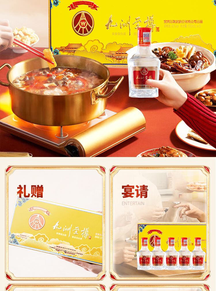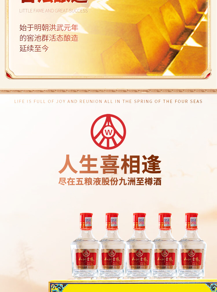 严选 | 五粮液股份公司出品·九洲至樽52°浓香型白酒五瓶装礼盒 100ml*5瓶/盒 一瓶一码 可扫码查真伪
