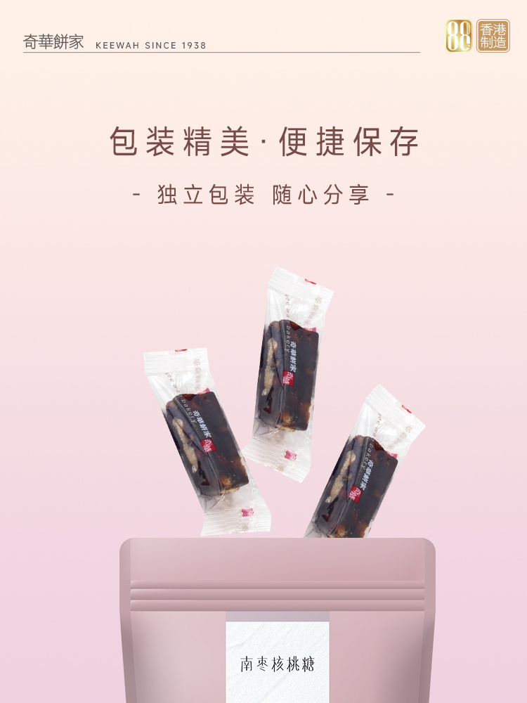 【奇华南枣核桃糖】 南枣核桃糕软糖结婚喜糖果进口休闲小吃传统零食