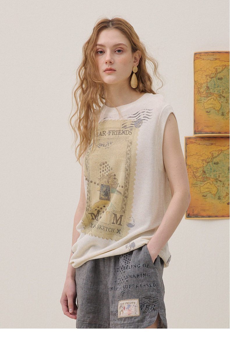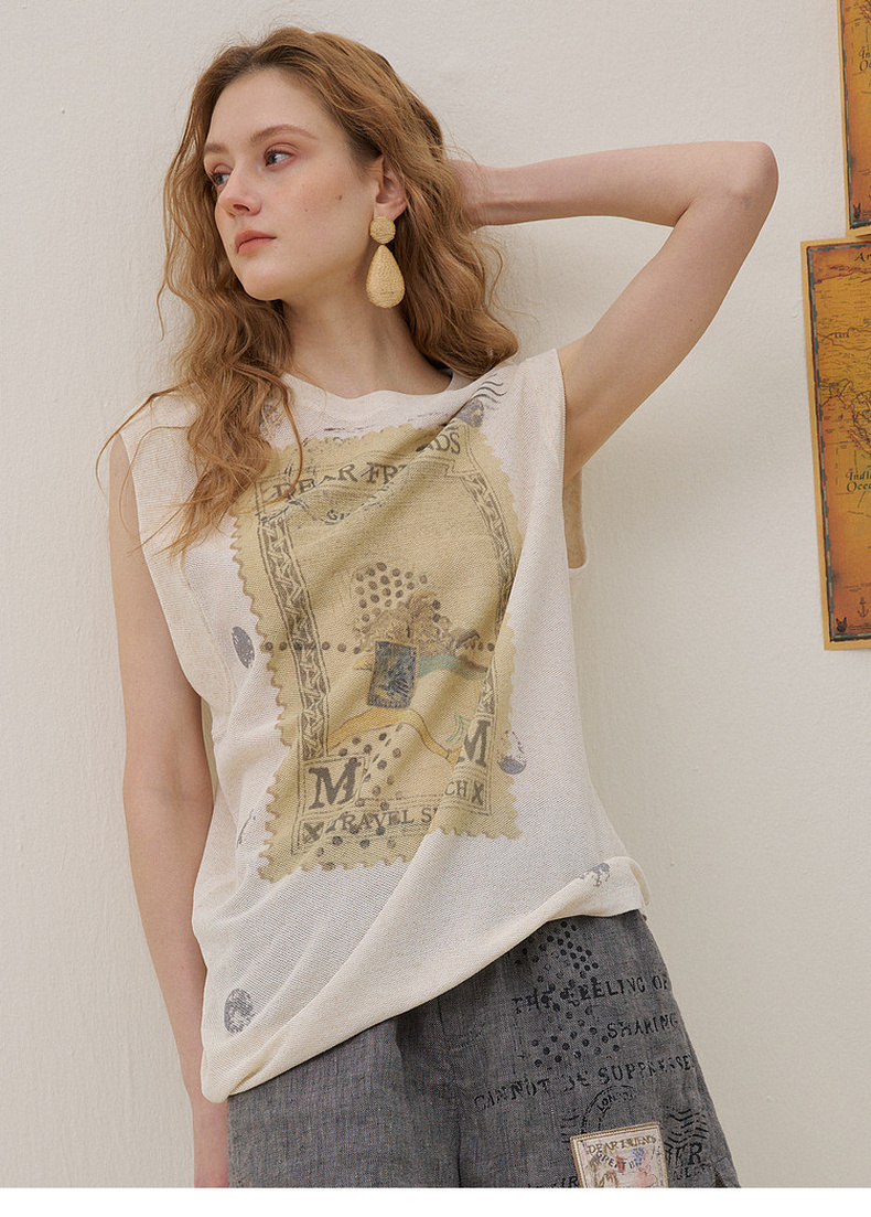 谜底针织衫无袖2026夏季新品时髦不规则提花毛衣背心女262MZ0761