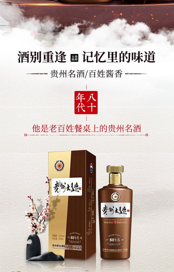 【专享】贵州茅台酒股份有限公司 贵州大曲80 2.0酱香型 53度500ml*6