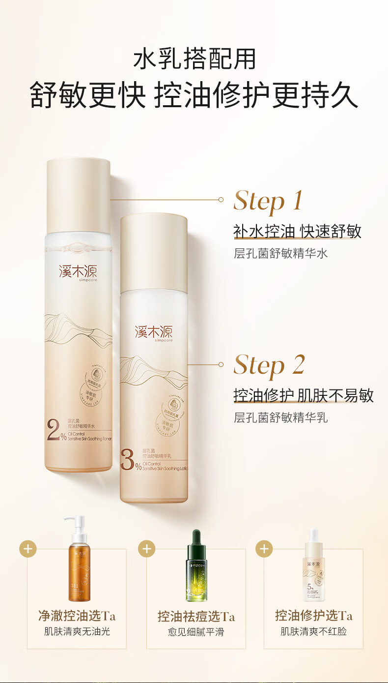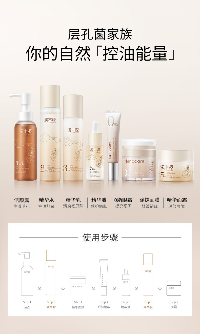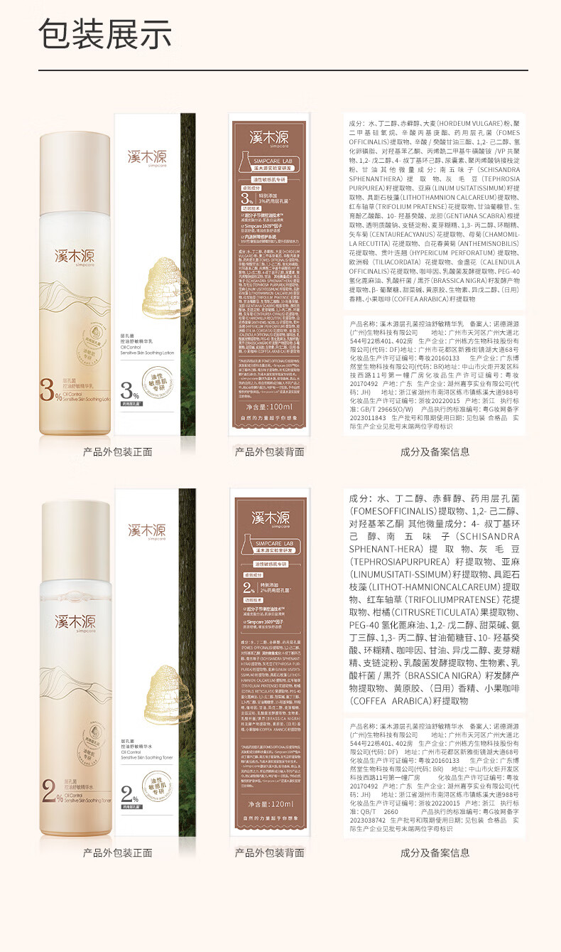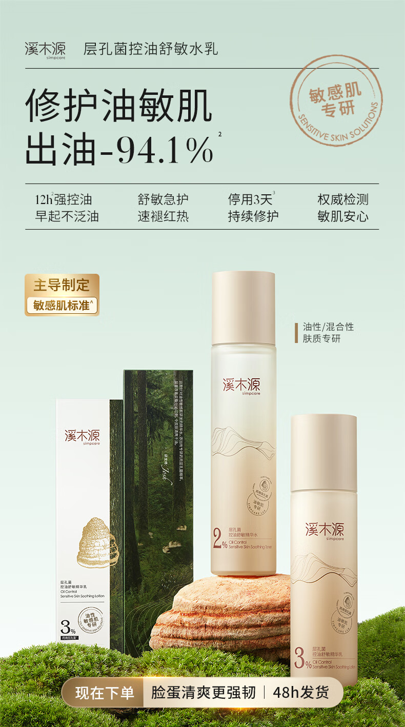 溪木源 层孔菌控油舒敏水乳霜组合220ml+30g XMY-535876
