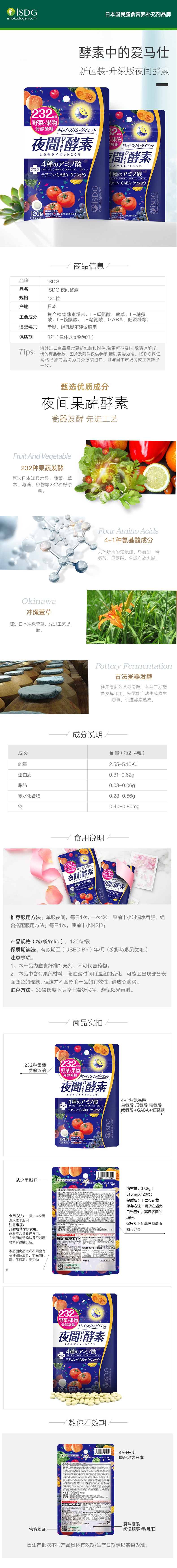 ISDG 日本进口232种果蔬酵素夜间酵素水果植物孝素非粉果冻 120粒
