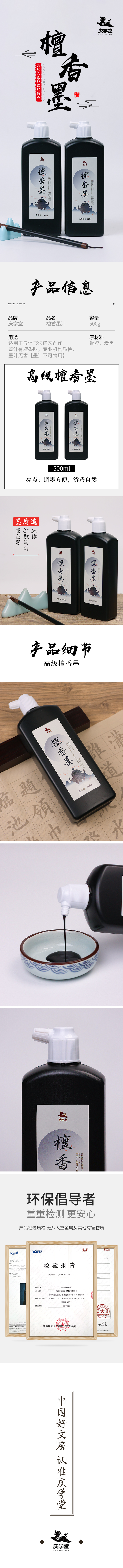 【庆学堂】檀香味墨汁500ml 文房四宝 书法国画墨汁创作墨汁书法入门练习练字墨水