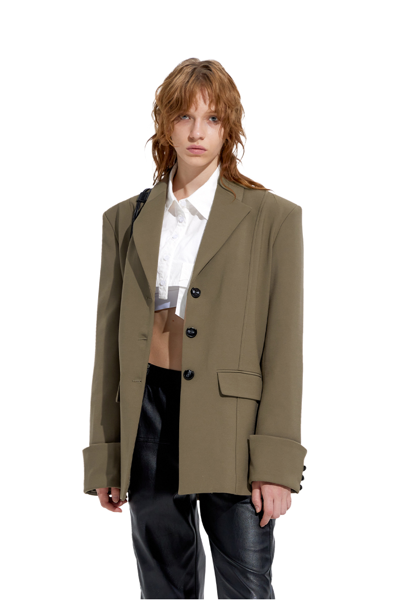 NUTH“再度开始的日常”卡其色西装宽松百搭设计感西装外套