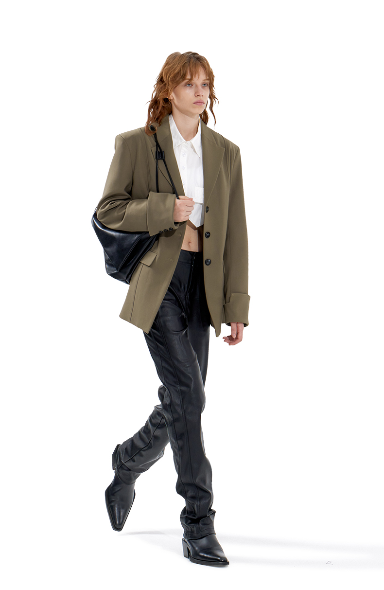 NUTH X 24ANS 联名系列 黑色设计感宽松皮衣外套/修身百搭短皮裙