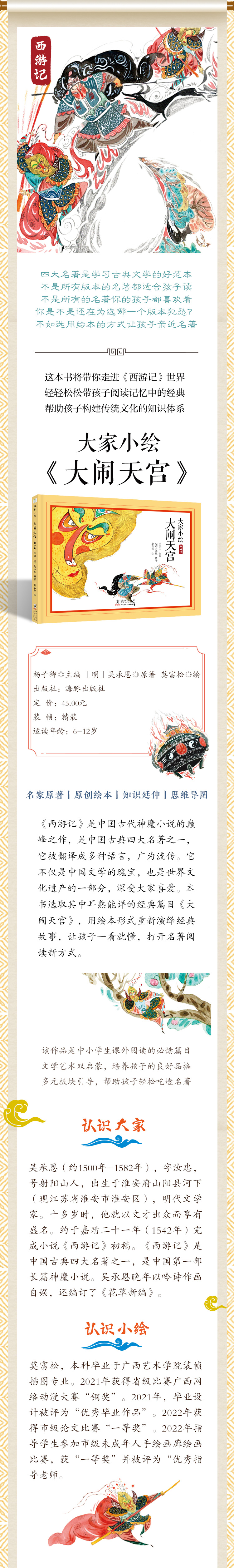 《西游记》是中国古代第一部浪漫主义章回体长篇神魔小说,与《三国演义》《水浒传》《红楼梦》并称为中国古典四大名著。它将历史上的真实事件不断地神化、幻化,借神魔世界反映现实社会,歌颂了敢于向封建权威挑战的叛逆精神和英雄行为。
