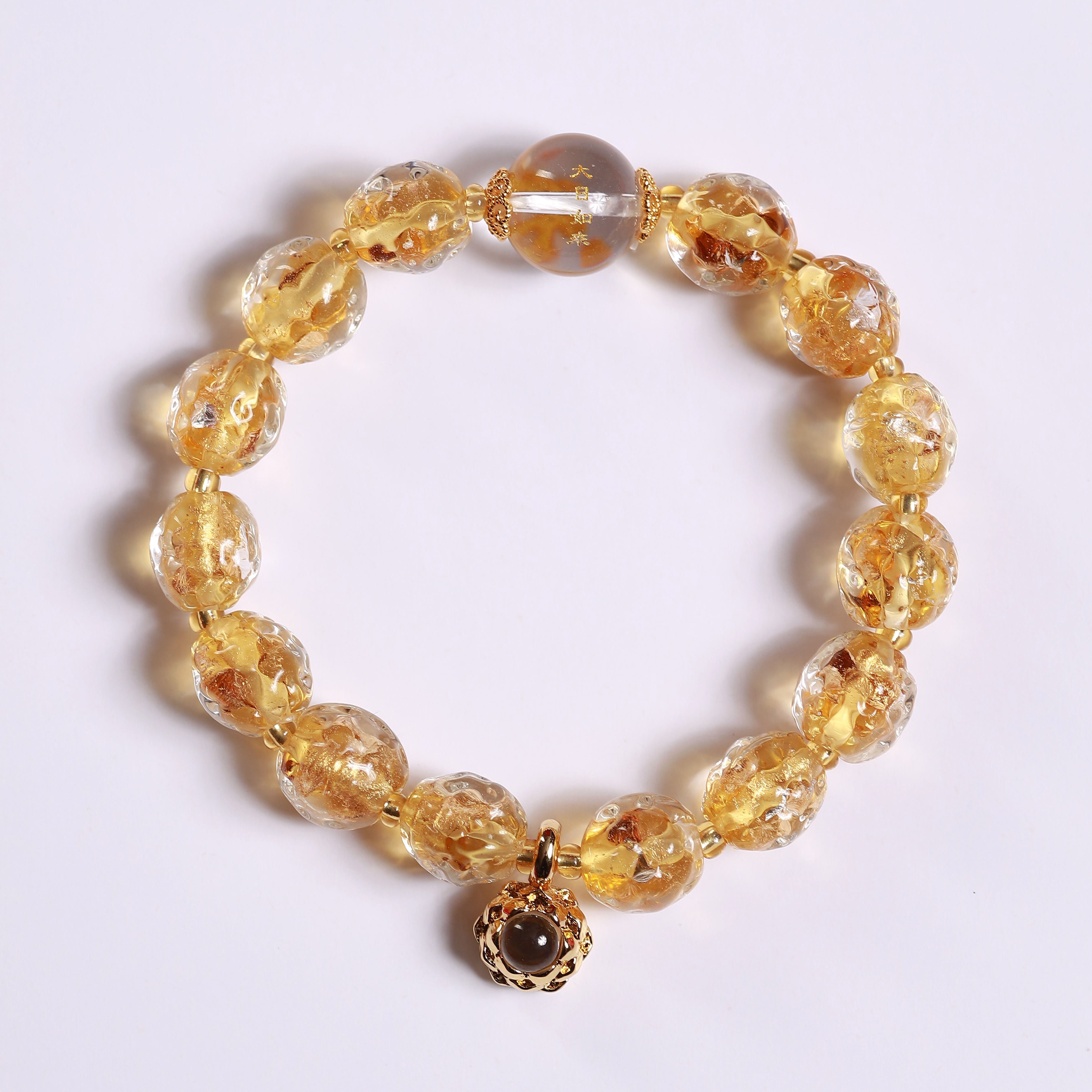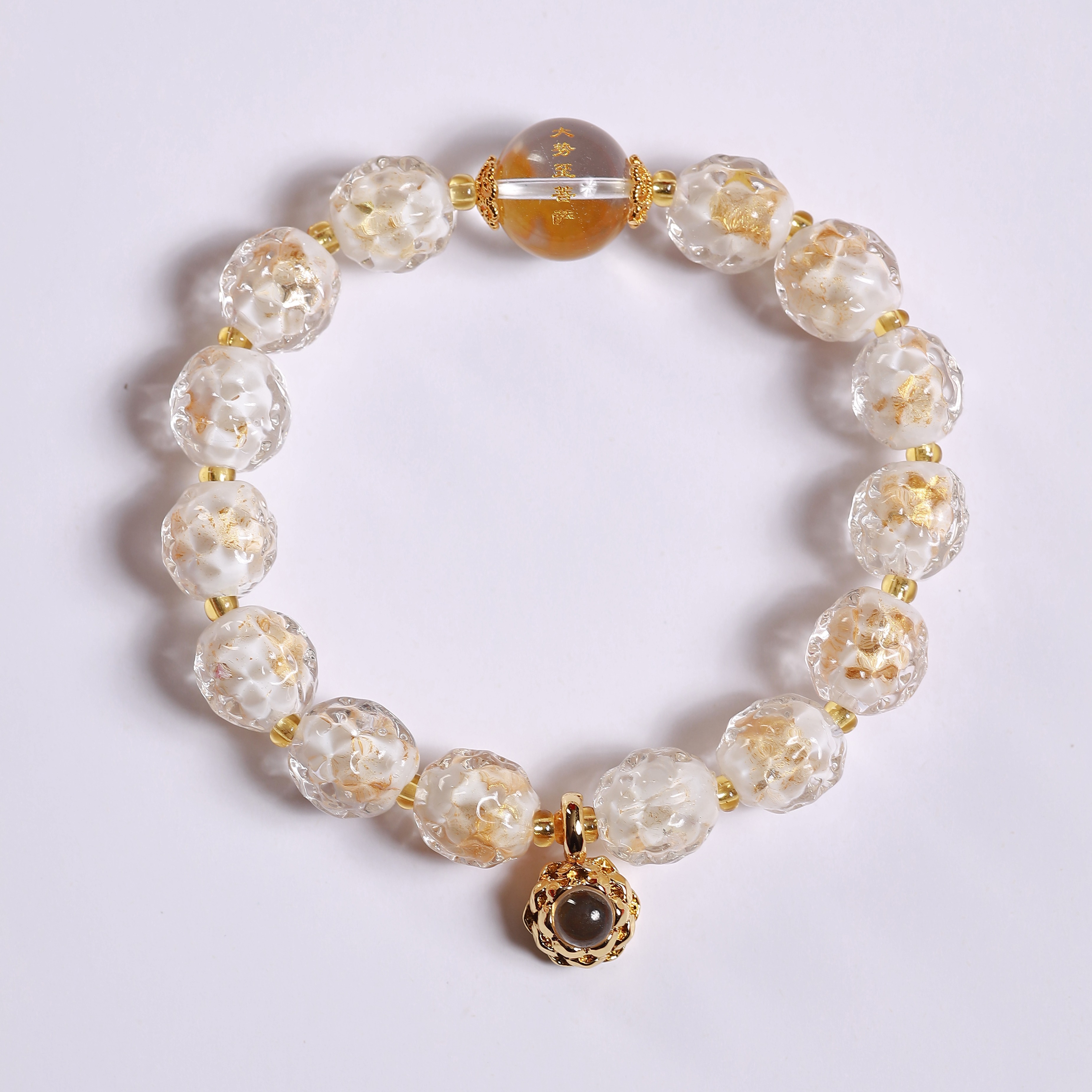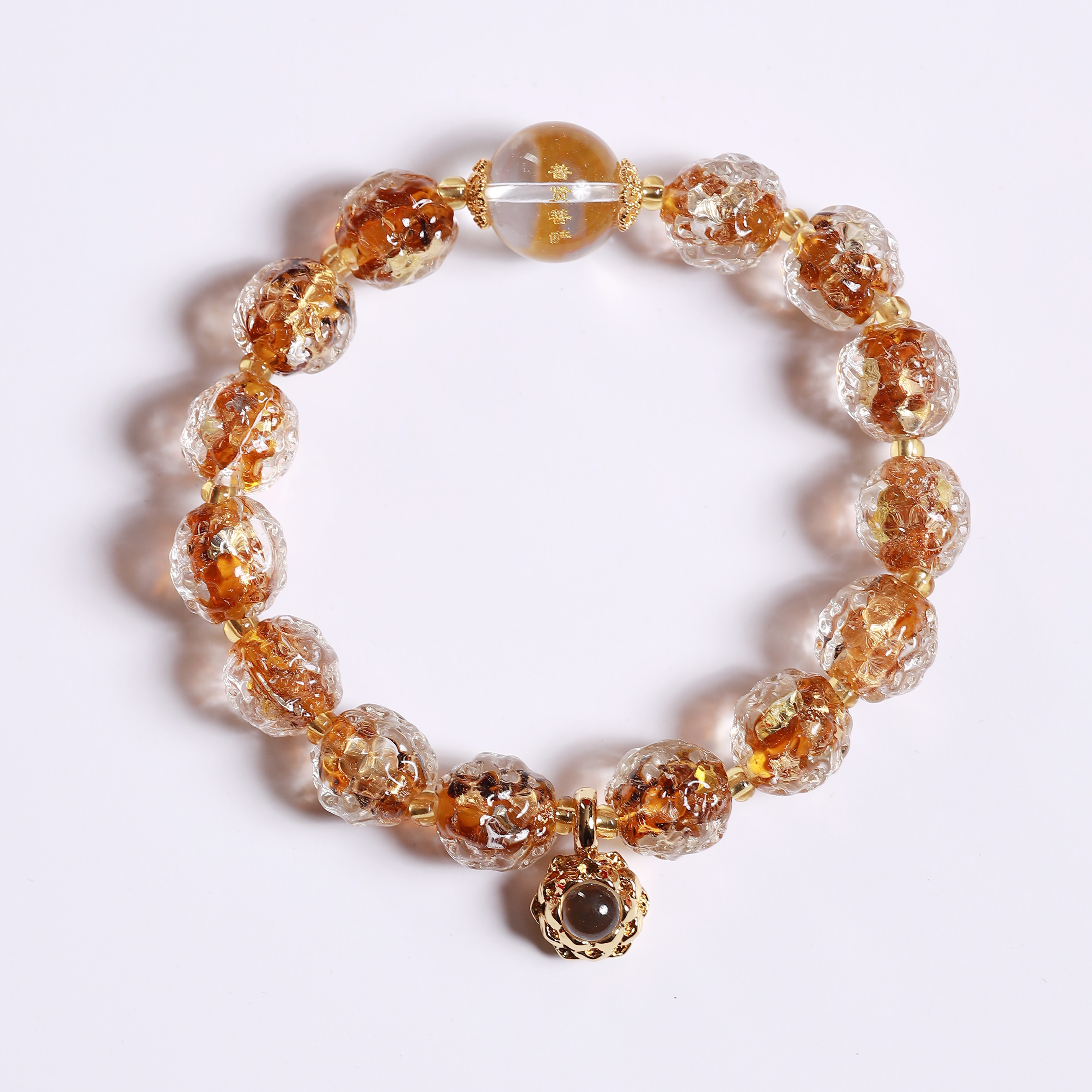 【品名】敦煌八大锤纹金箔香灰珠手串
