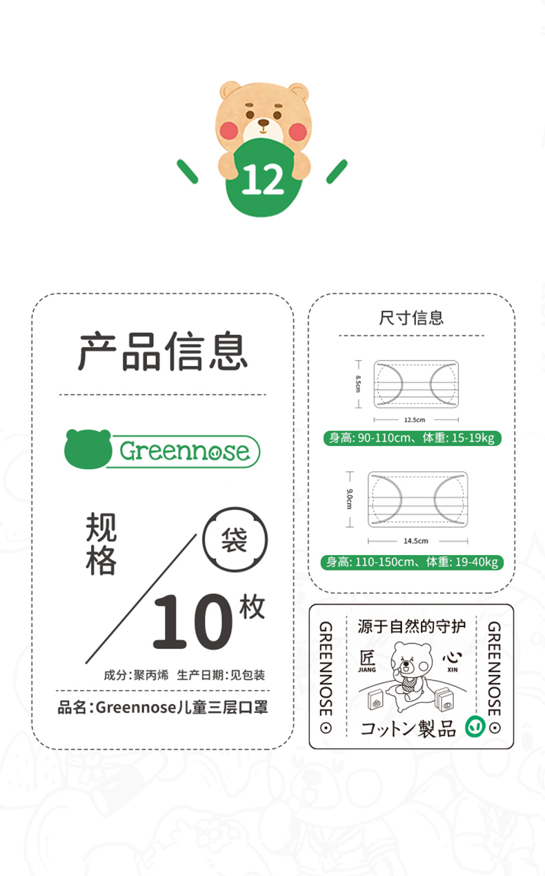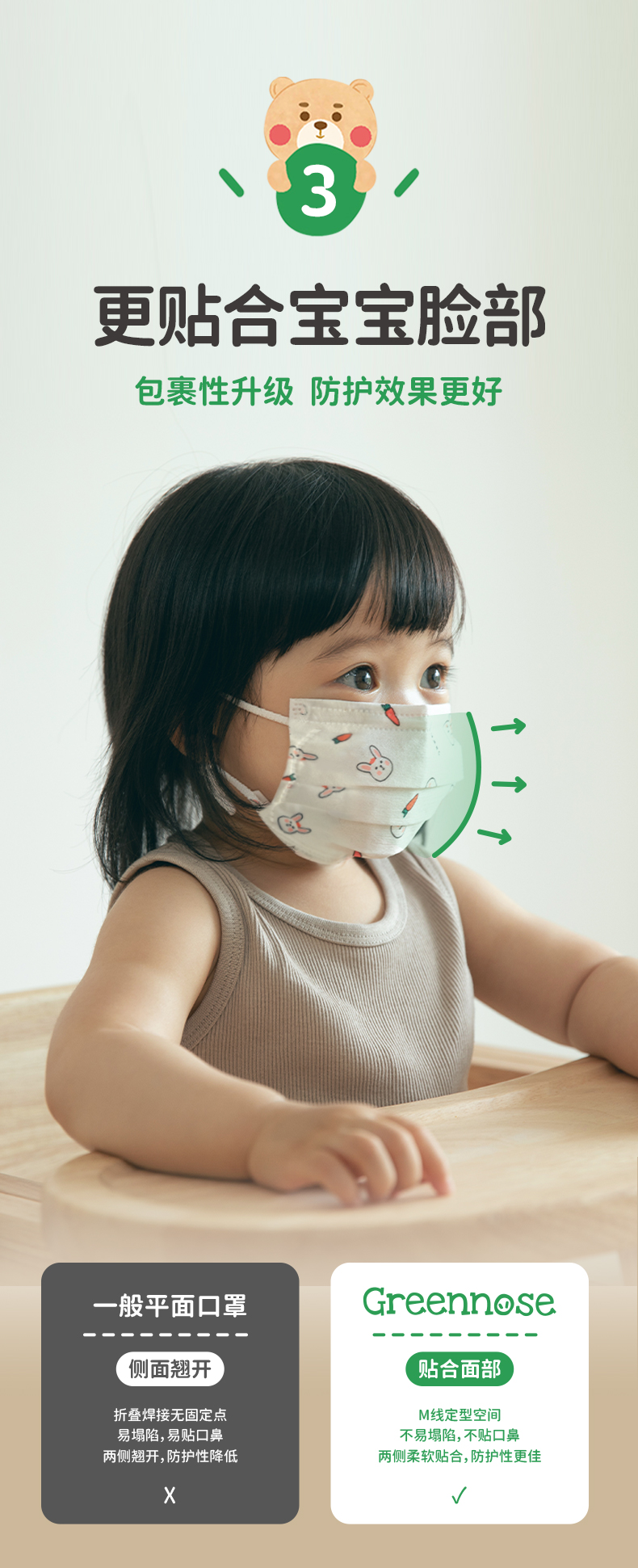 绿鼻子儿童口罩0-3岁6月婴幼儿专用口耳罩一次性小孩女宝宝防护罩